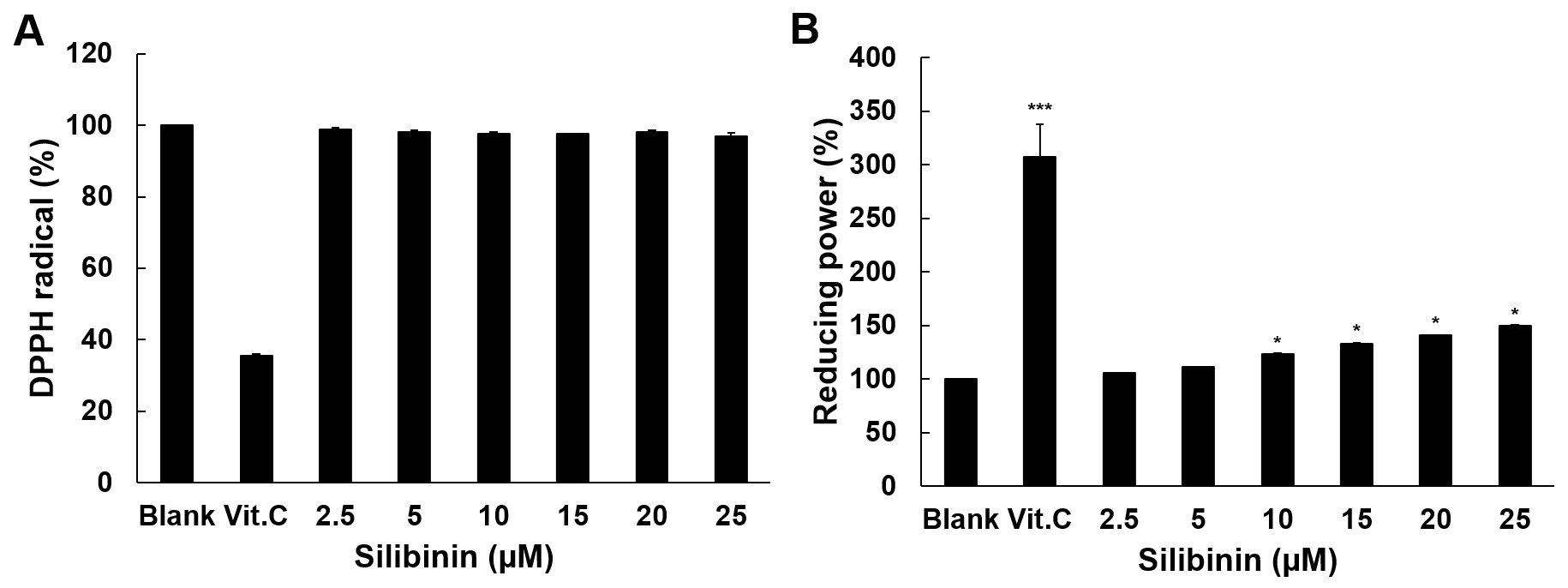 The antioxidant activity of silibinin was examined using the DPPH radical