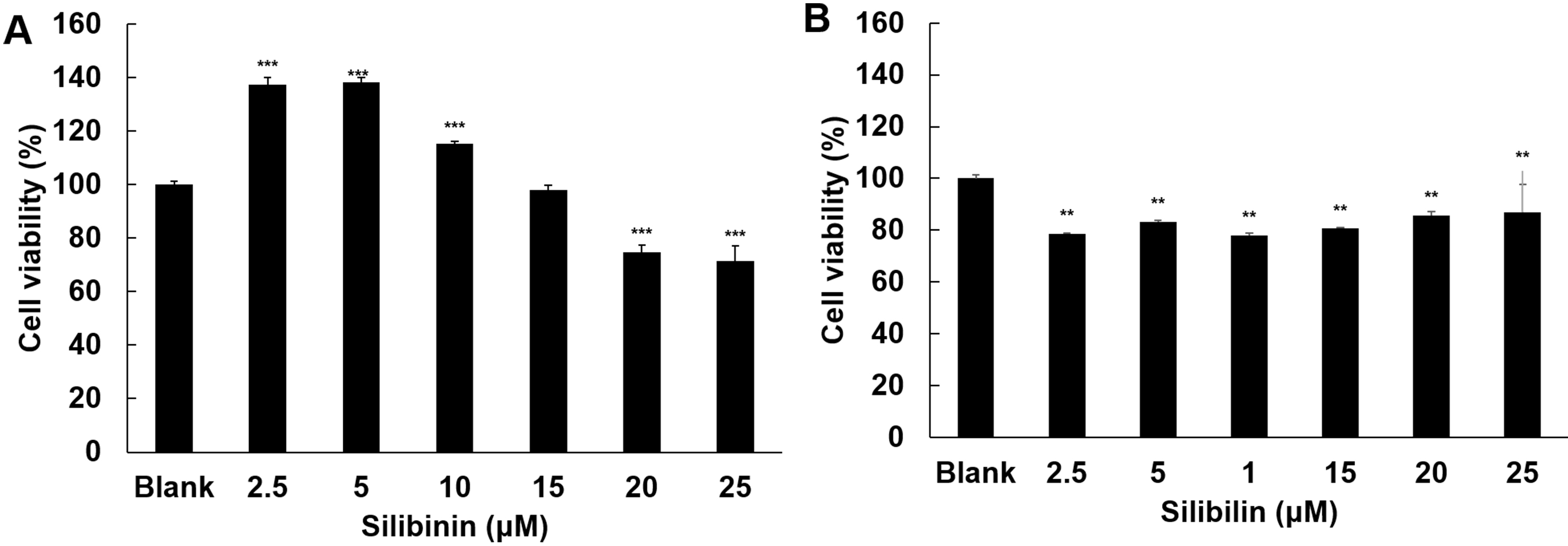 were treated with silibinin at 2.5, 5, 10, 15, 20, and 25