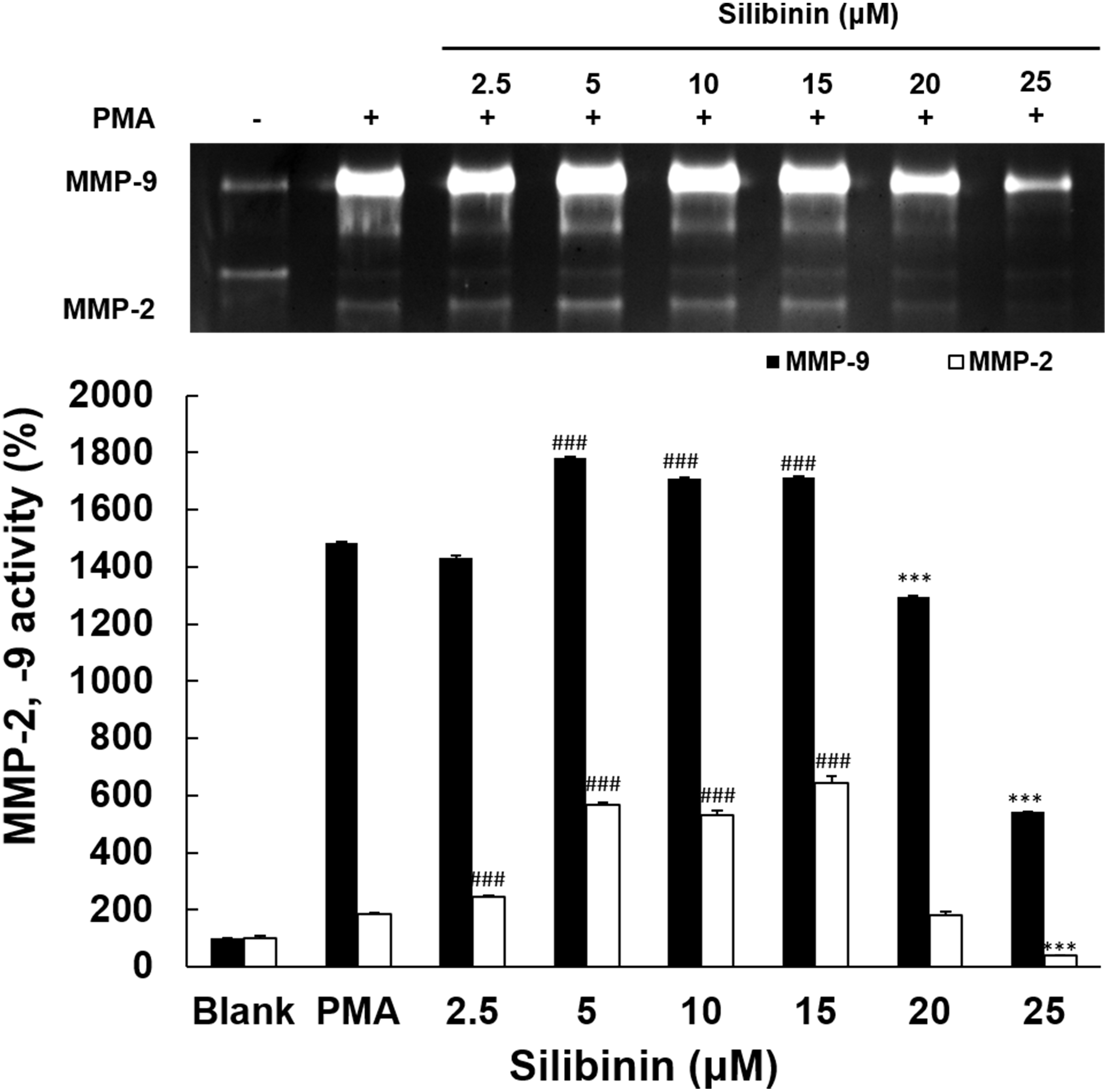 Fig. 3.Effects of silibinin on MMPs activation. The inhibitory effects