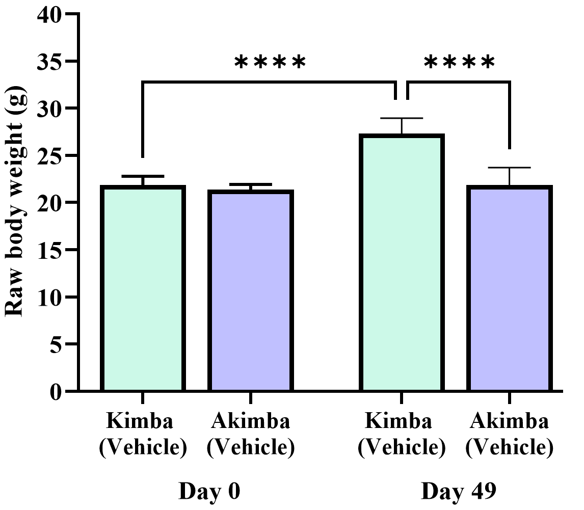 depicts the raw body weight of non-diabetic Kimba and diabetic Akimba mice