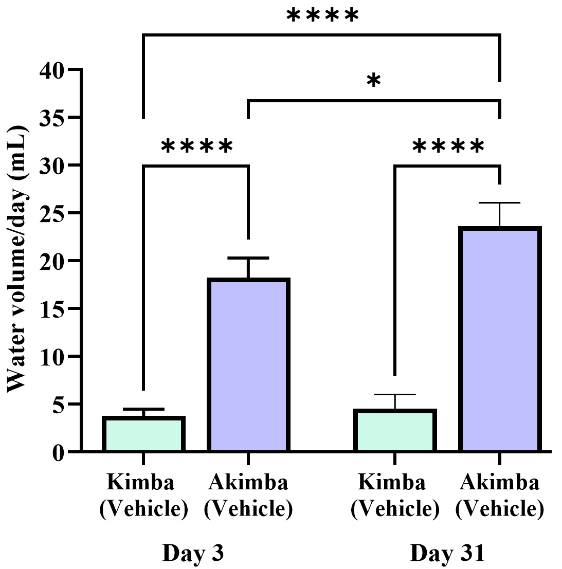 Fig. 6.Effect of SGLT2 inhibition on water volume consumed by Kimba and