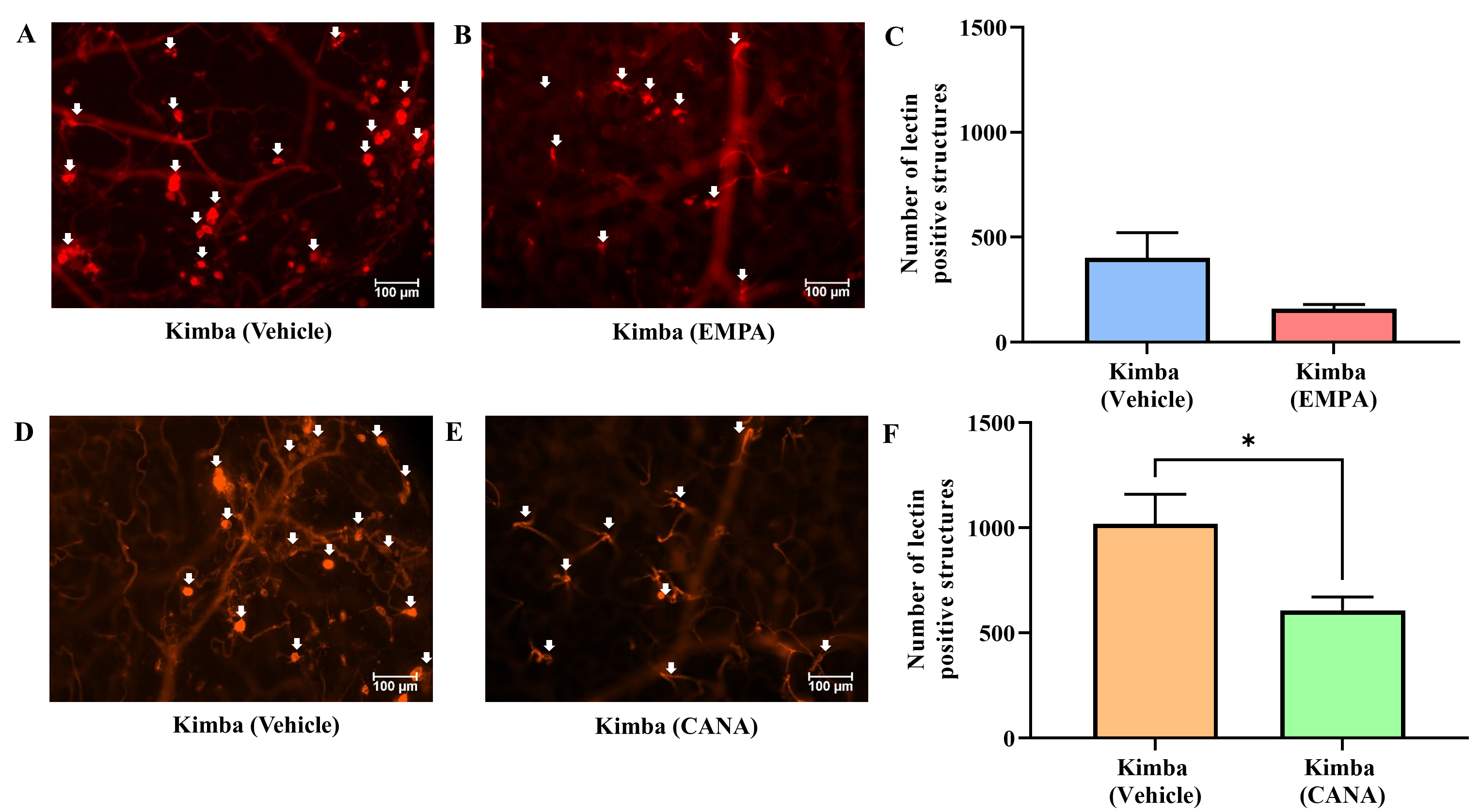stained vasculature from Kimba mice treated with (A and D) vehicle or (B) EMPA or
