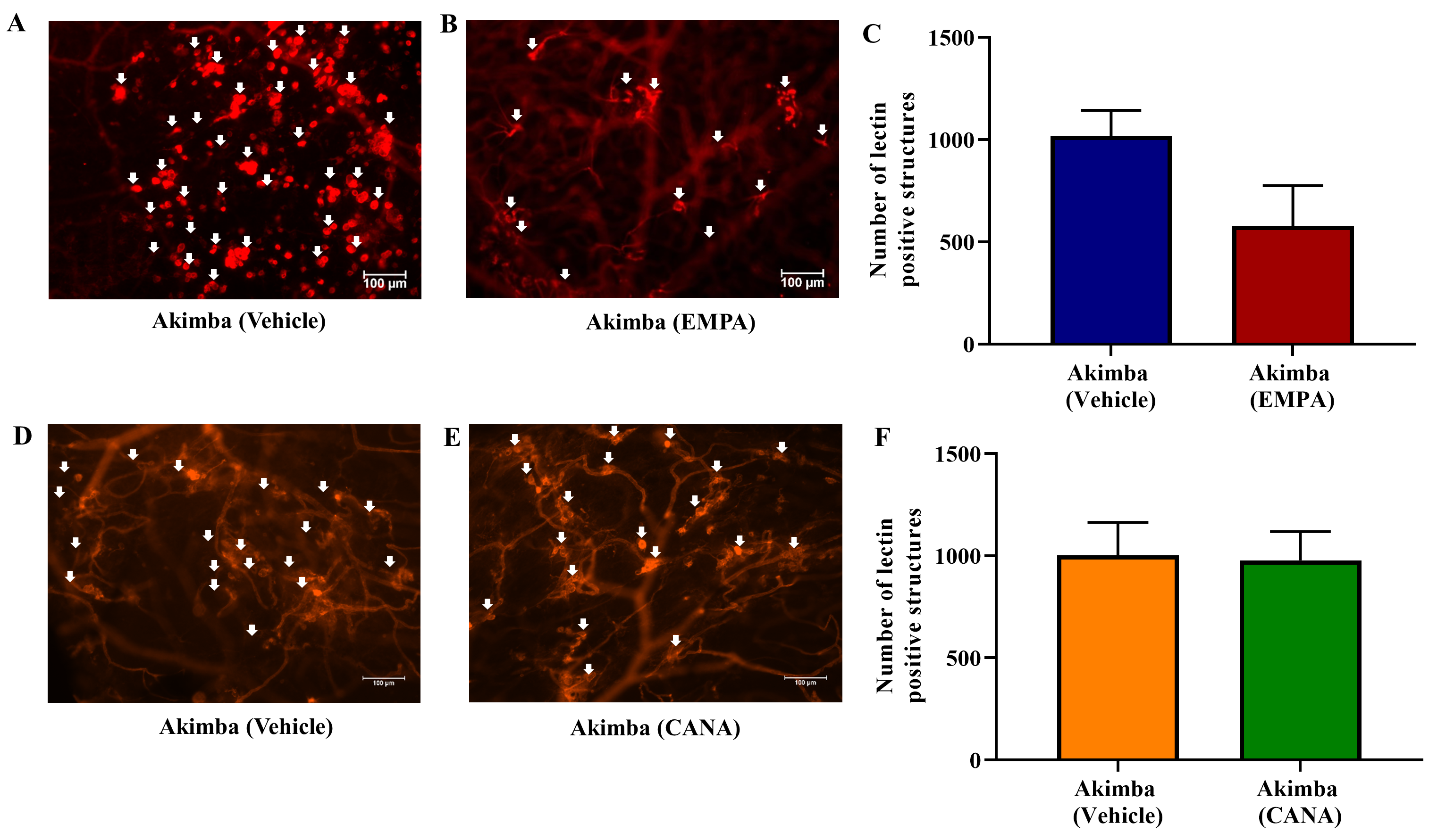 vasculature from Akimba mice treated with (A and D) vehicle or (B) EMPA or (E)
