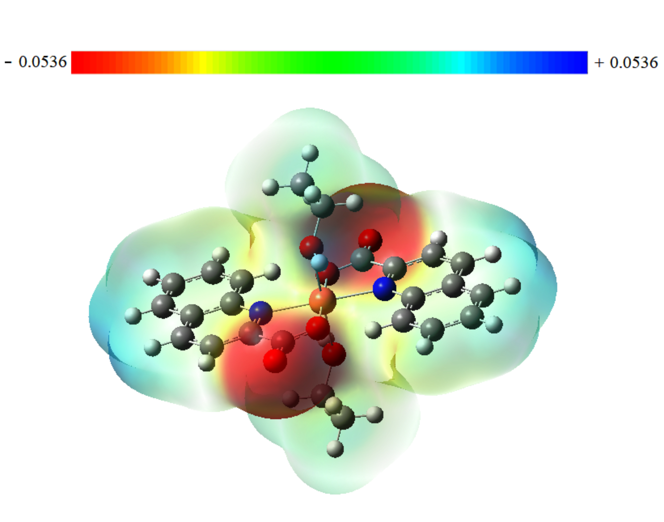 Fig. 5.Molecular electrostatic potential map for Trans-[Cu (quin)2(EtOH)2] compound.