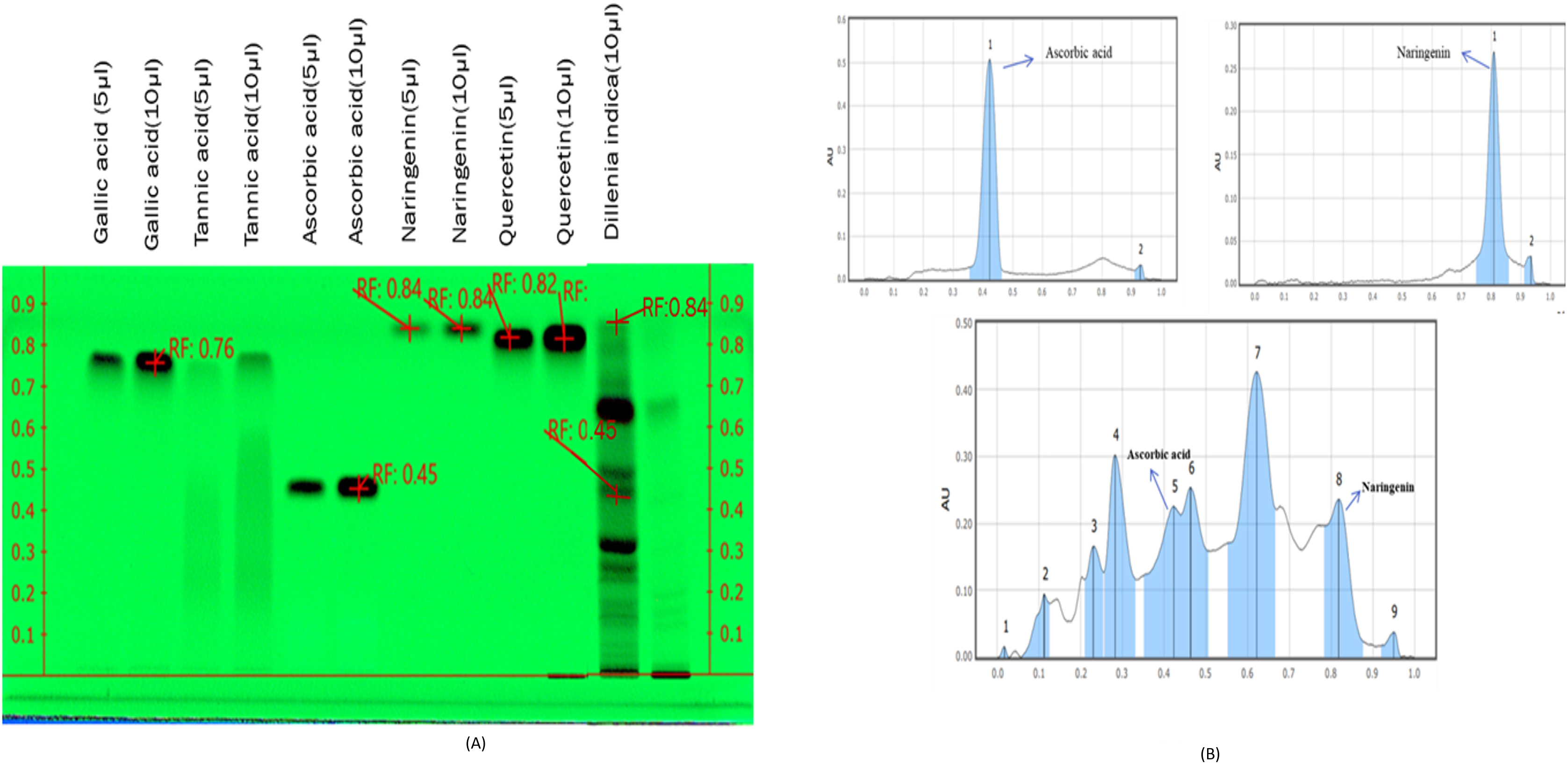 HPTLC fingerprinting of MFE was done as shown in Fig. 1A, along with various