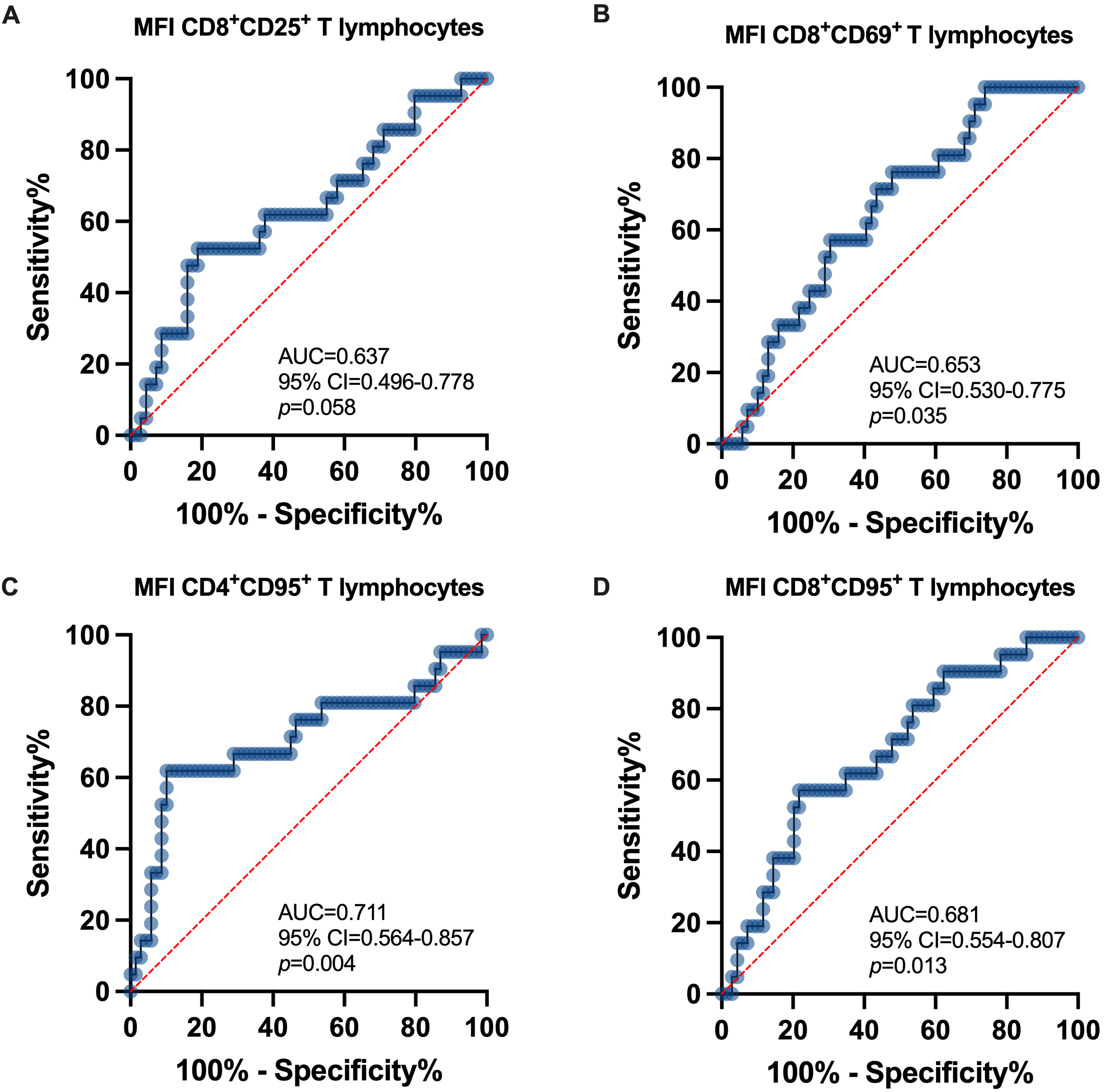 Demographic, clinical, and immunological data were collected in a unified database (Microsoft Access 11.0; Microsoft Corporation, Seattle, WA, USA), and statistical analysis was performed using the SPSS 20.0 software (SPSS Inc., Chicago IL, USA). The Kolmogorov–Smirnoff test was used to assess whether the demographic and clinical patient data, as well as the percentages and MFI data of the T lymphocyte subsets adjusted to parametric distribution. All variables were distributed nonparametrically. Therefore, quantitative data were presented using the median with an interquartile range of 25 and 75, whereas qualitative data were presented as absolute and relative frequencies.