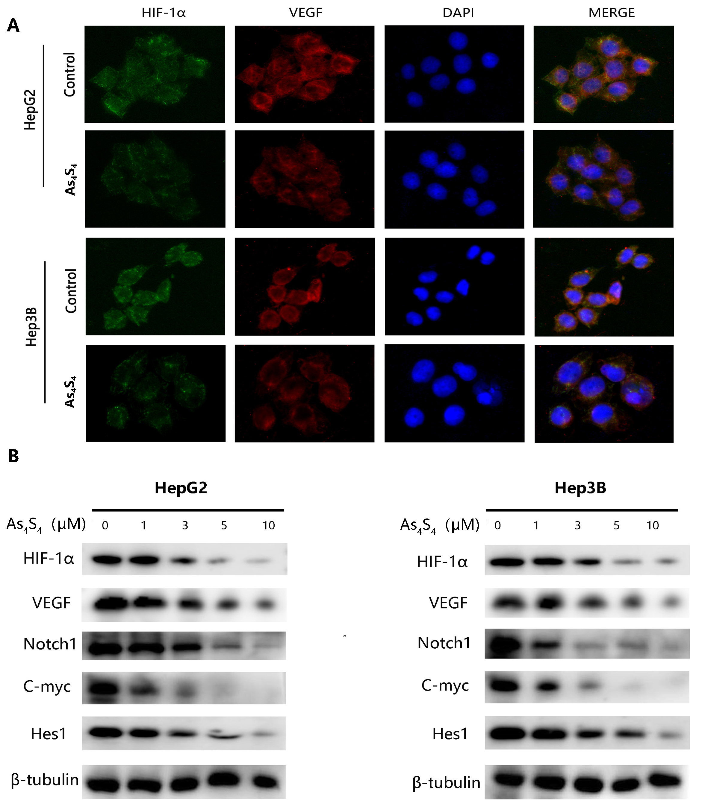 without 5 µM AsS for 24 h. (B) Western blot was utilized to detect HIF-1, VEGF and Notch pathway