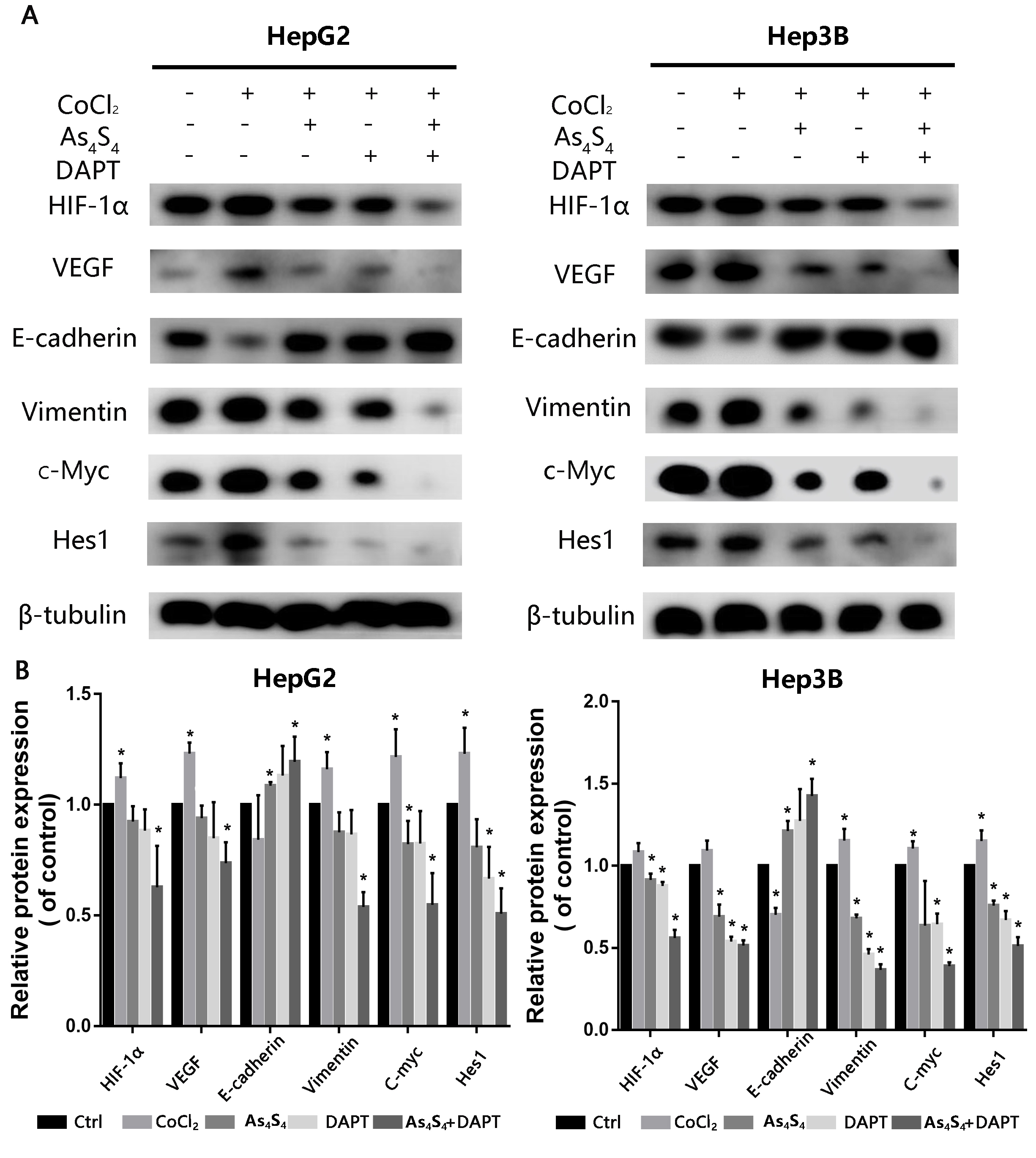 Vimentin, c-Myc and Hes-1 proteins by western blot. AsS, DAPT (a specific inhibitor of Notch receptor cleavage), and