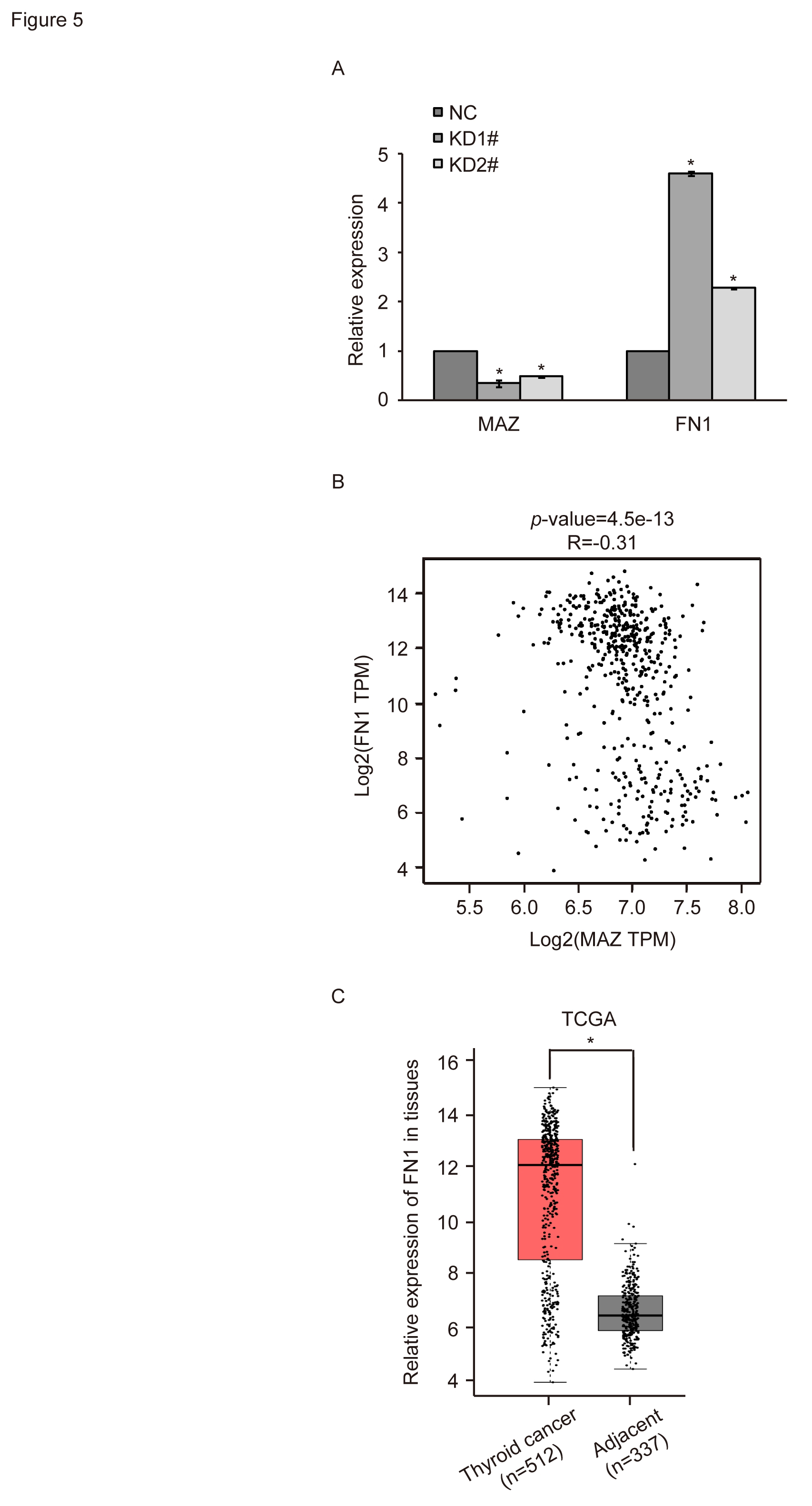 correlation between the expression levels of MAZ and FN1 in thyroid cancer