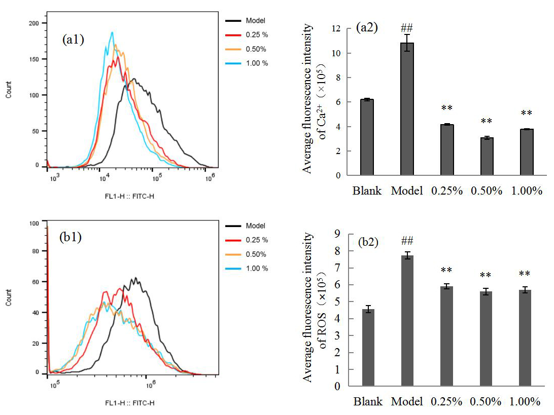 Fig. 3.Flow cytometry (a1,b1) showing the Ca