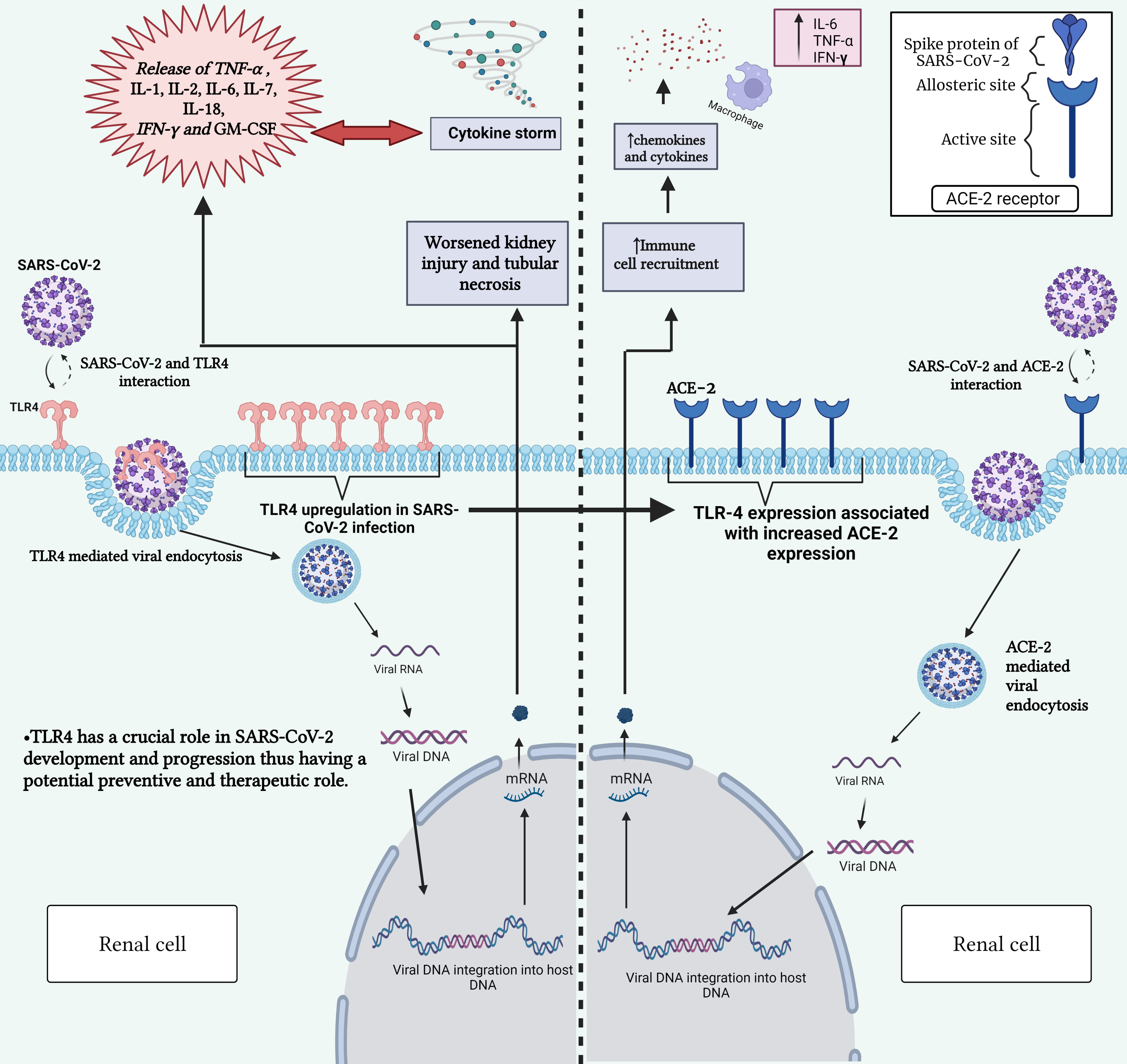 of ACE2 and TLR-4 receptors in mediating viral entry into host cells. Gaining