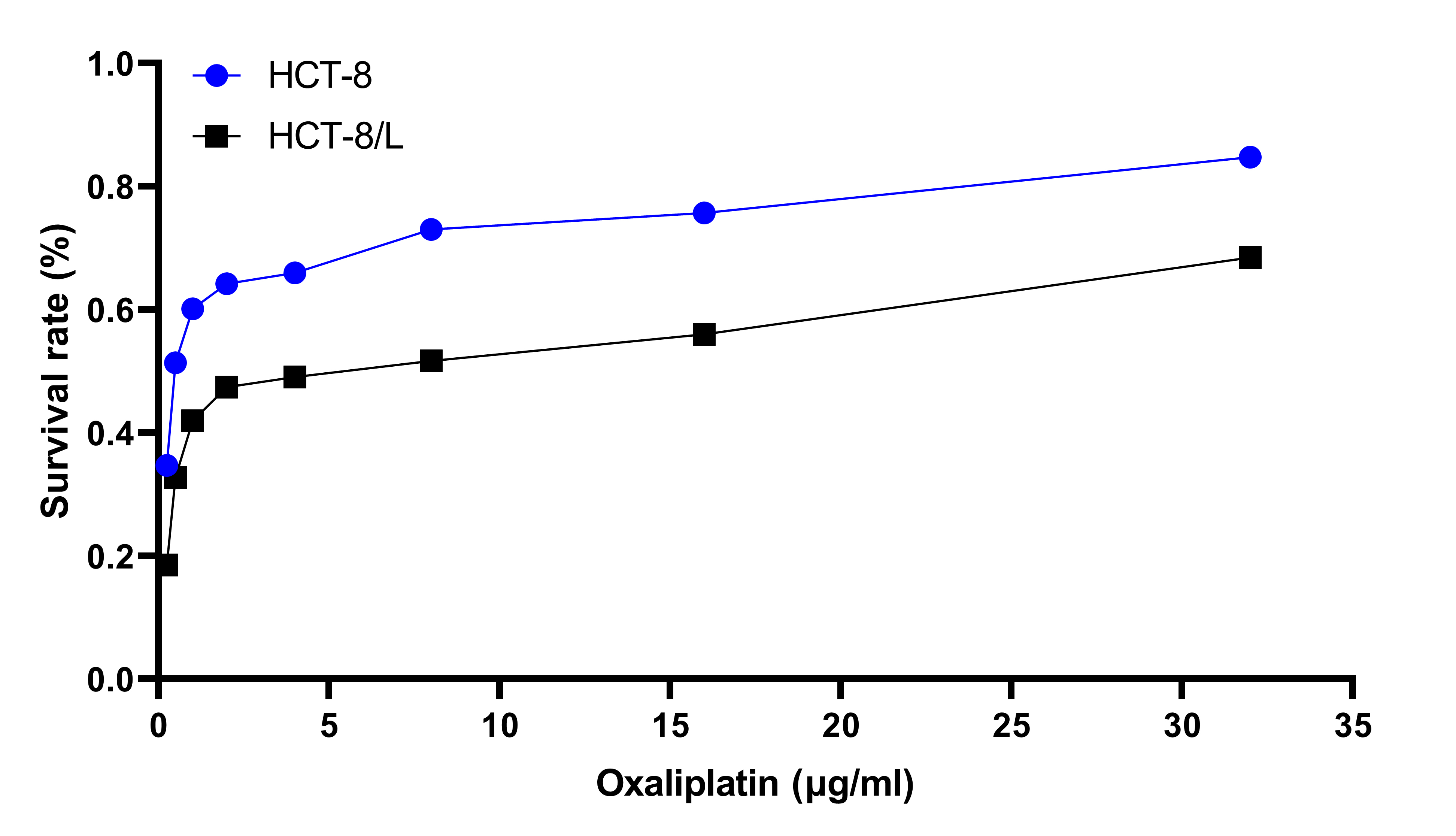 The HCT8 cells were purchased from the Procell Company, and the resistant cells of HCT8/L were purchased from the Aolu Biological Company (Shanghai, China); all cell lines were cultured in Dulbecco’s-Modified-Eagle-Medium-High Glucose supplemented with 10% fetal bovine serum (FBS, Procell Company) and 100 mg/mL of penicillin/streptomycin/glutamine (Procell Company) at 37 °C with 5% CO2. All cell lines were tested using a mycoplasma kit (Sigma) and were free of mycoplasma contamination. Furthermore, all cell lines were authenticated using short tandem repeat technology performed by the Shanghai Xuanyi Technical Service Centre shortly before use.