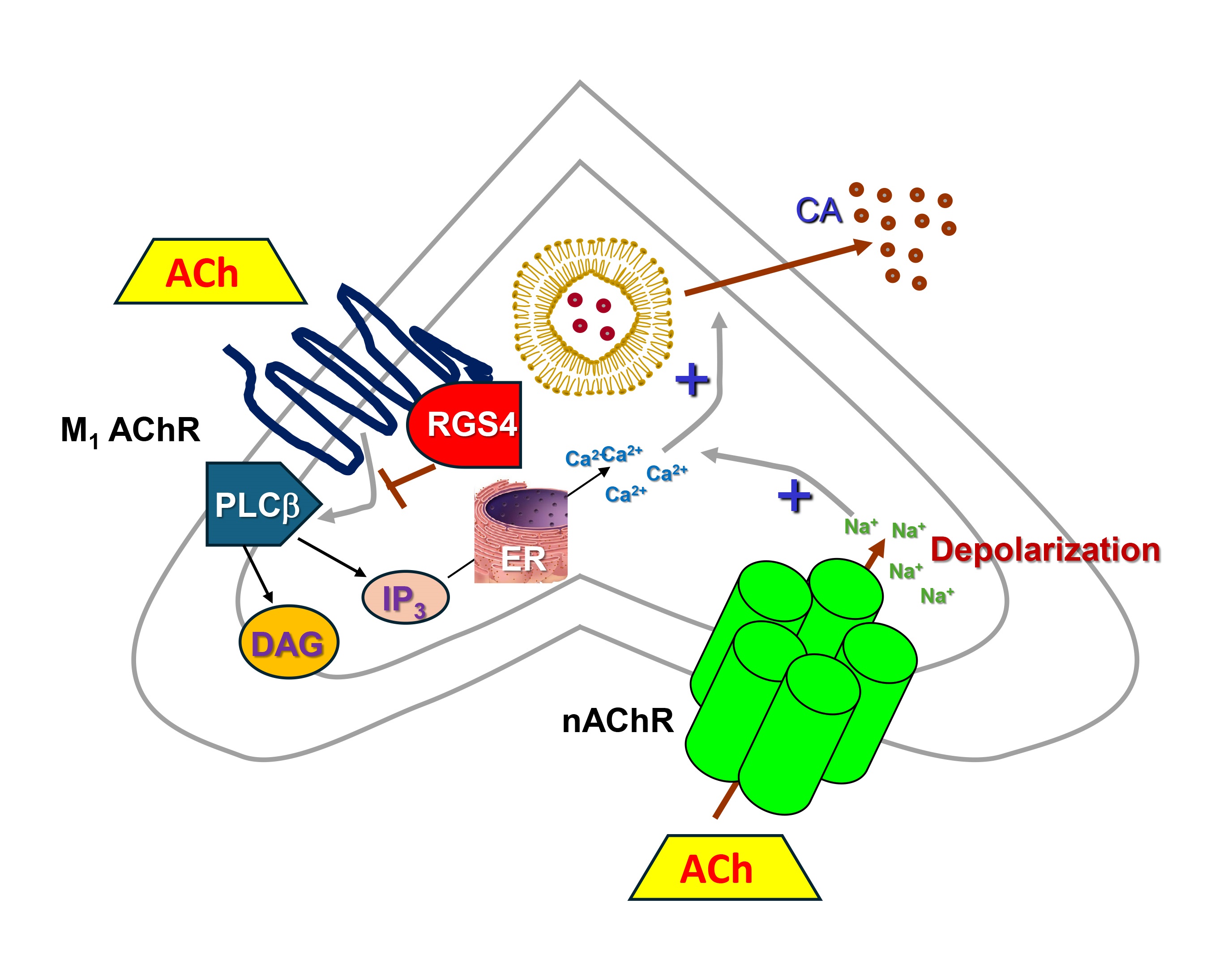 RGS4 inhibits CA secretion in adrenal chromaffin cells. M1