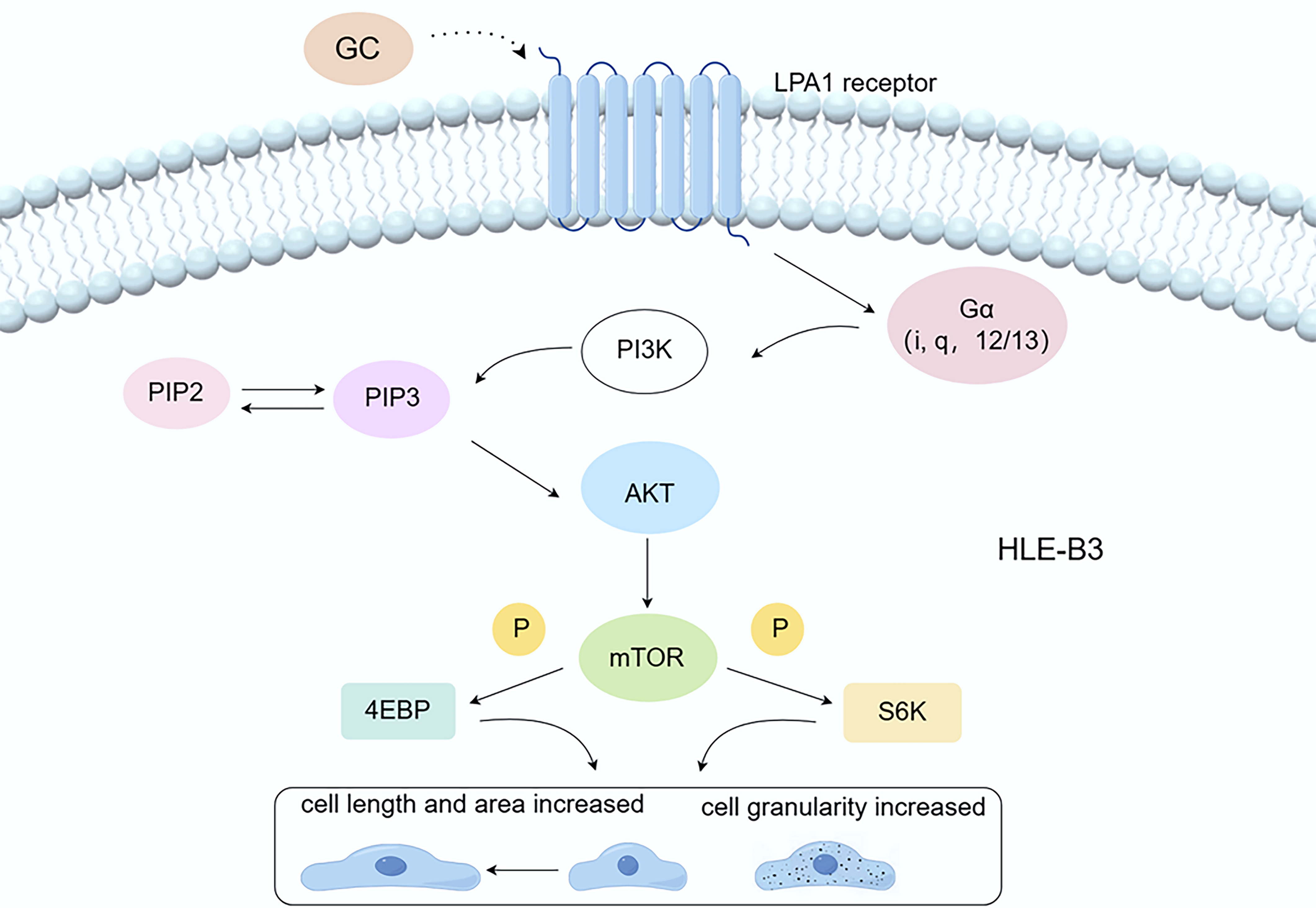 A large number of previous studies have been done on lens epithelial cells using different methods with the aim of identifying potential pathways that affect their normal morphology and function. A study performed proteomic analysis of HLEC line (SRA01/04) after ultraviolet B irradiation to investigate the relationship between lens ubiquitination and the development of age-related cataracts (ARC) [43]. Gong et al. [44] used lipidomics to study metabolic differences in LECs in patients with ARC of varying severity, and pathway analysis showed that glycerophospholipid metabolism was significantly affected. Additionally, other studies have used microarray analysis to identify genes and transcription factors related to the effects of GCs on HLECs. These studies showed that GCs can regulate the PI3K/AKT signaling pathway, downregulate the expression of C-C motif chemokine ligand 2, and upregulate the expression of dual specificity phosphatase 1 and FAS cell surface death receptor [45, 46, 47]. However, the number of detected genes by these methods are limited, and no studies have reported a role for LPAR1 and its mediated signaling pathways in GIC.