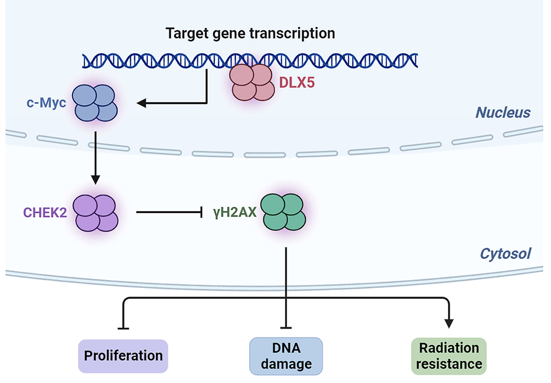 break (DSB) repair genes, thereby enhancing radioresistance in tumor cells [9, 10]. Additionally, DLX5 has been shown to directly bind to the c-Myc promoter in