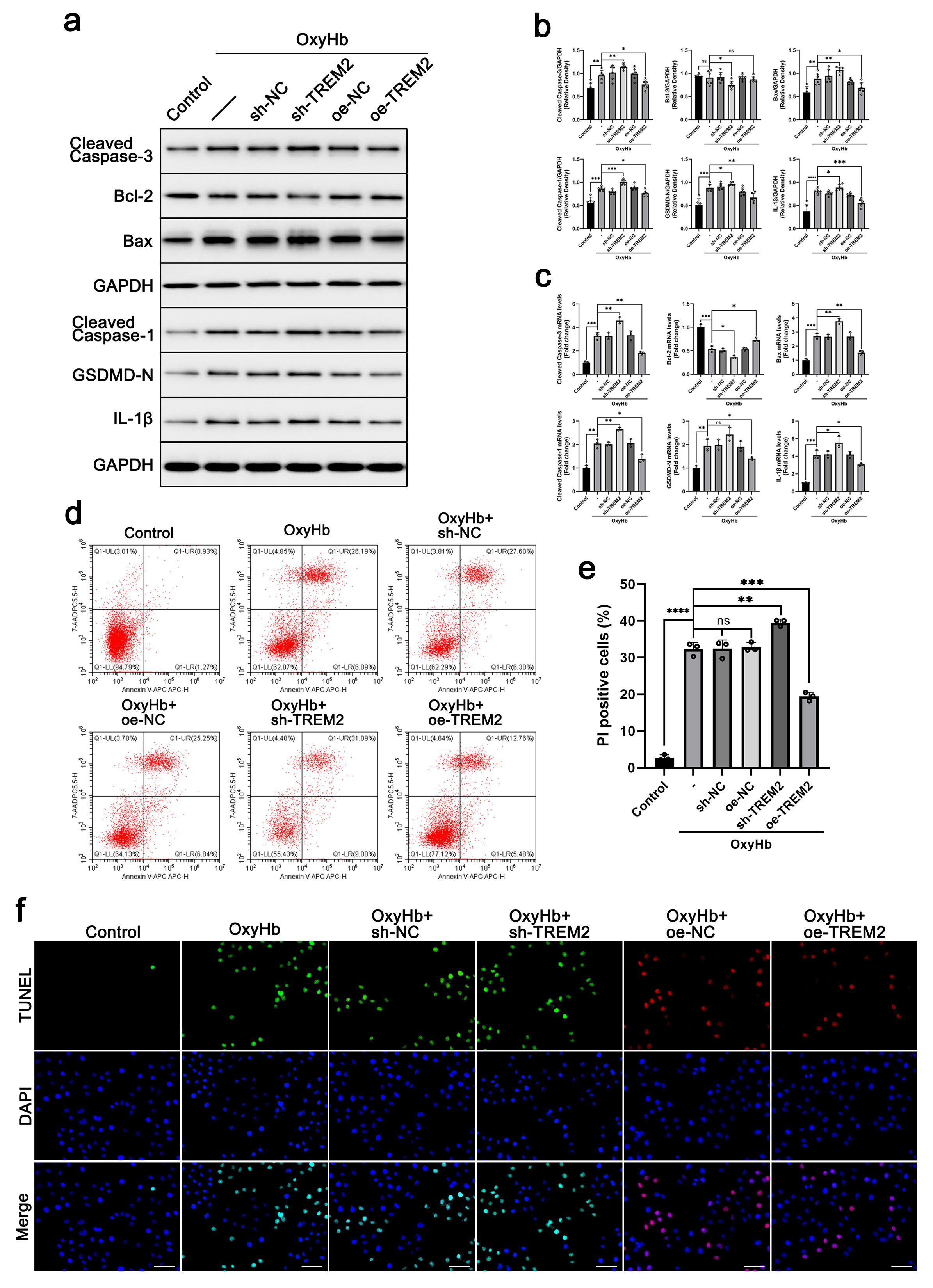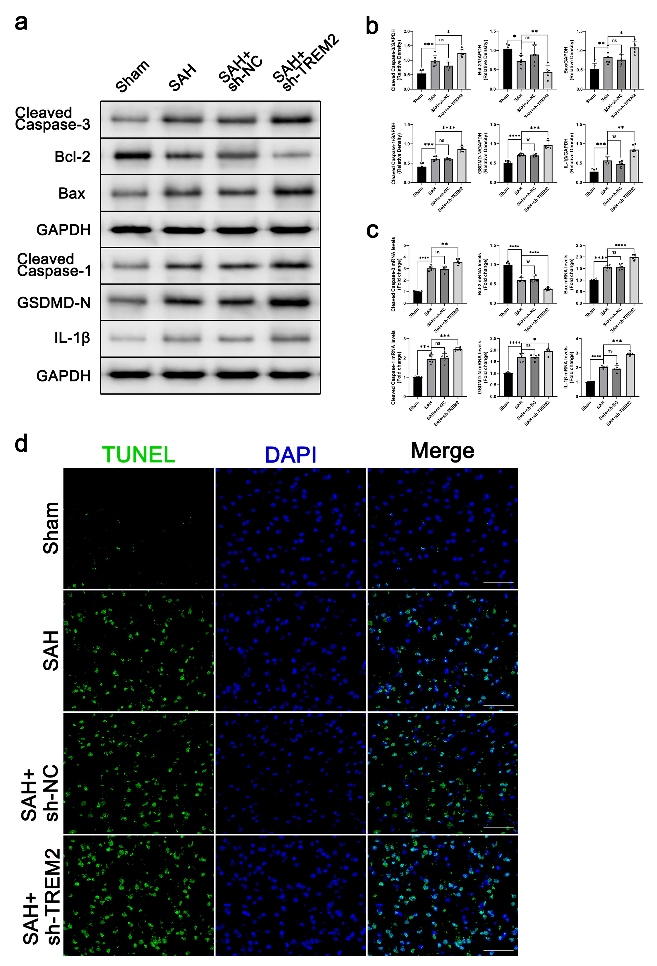 role of TREM2 in SAH, we further detected cell apoptosis and pyroptosis in the