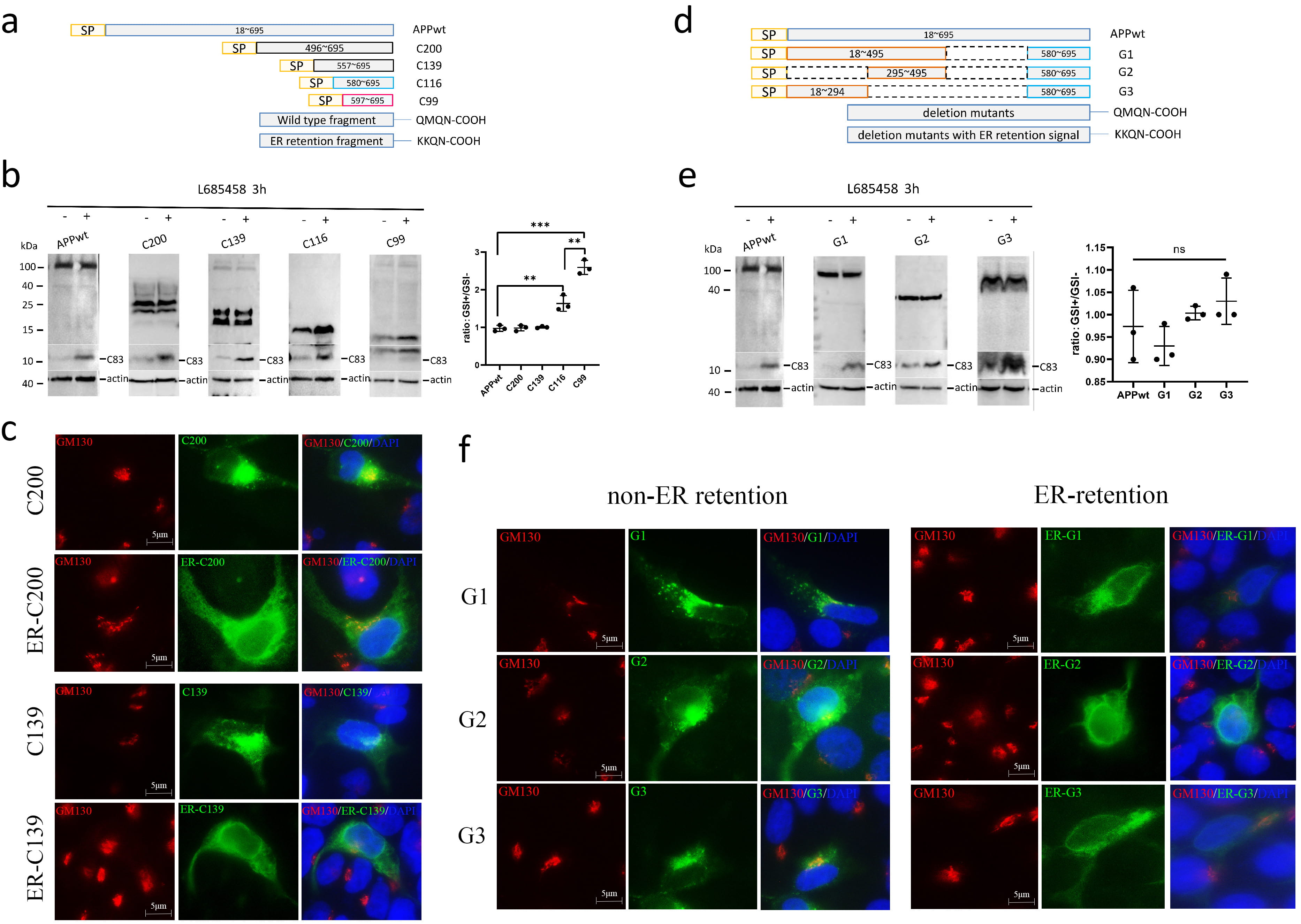 -secretase inhibition (GSI-) were plotted. (c) C99, GFP-C99, and