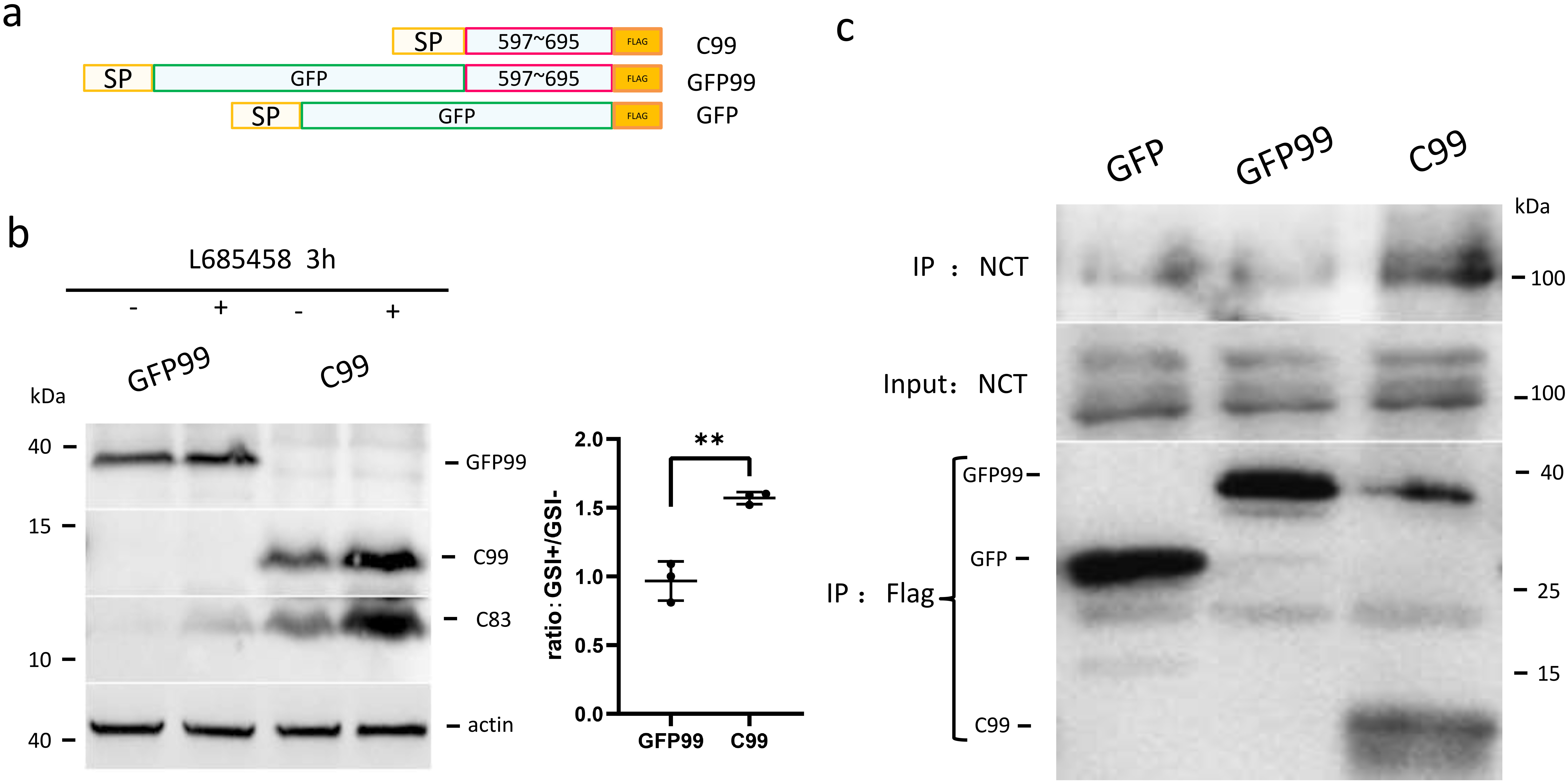 -cleavage, we performed co-IP of C99 and GFP-C99 with endogenous NCT.