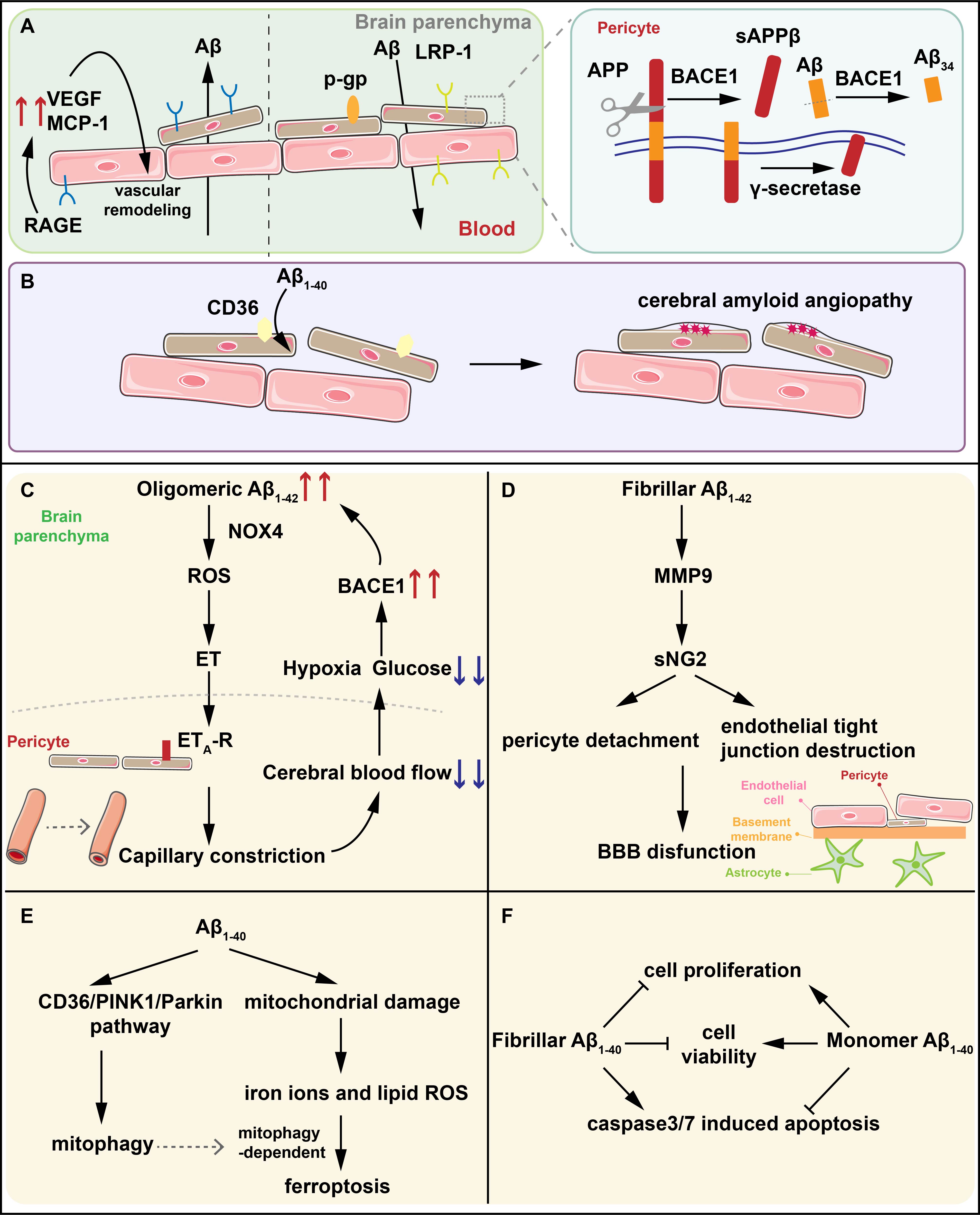 A is degraded in pericytes via BACE1. The impairment of these pathways