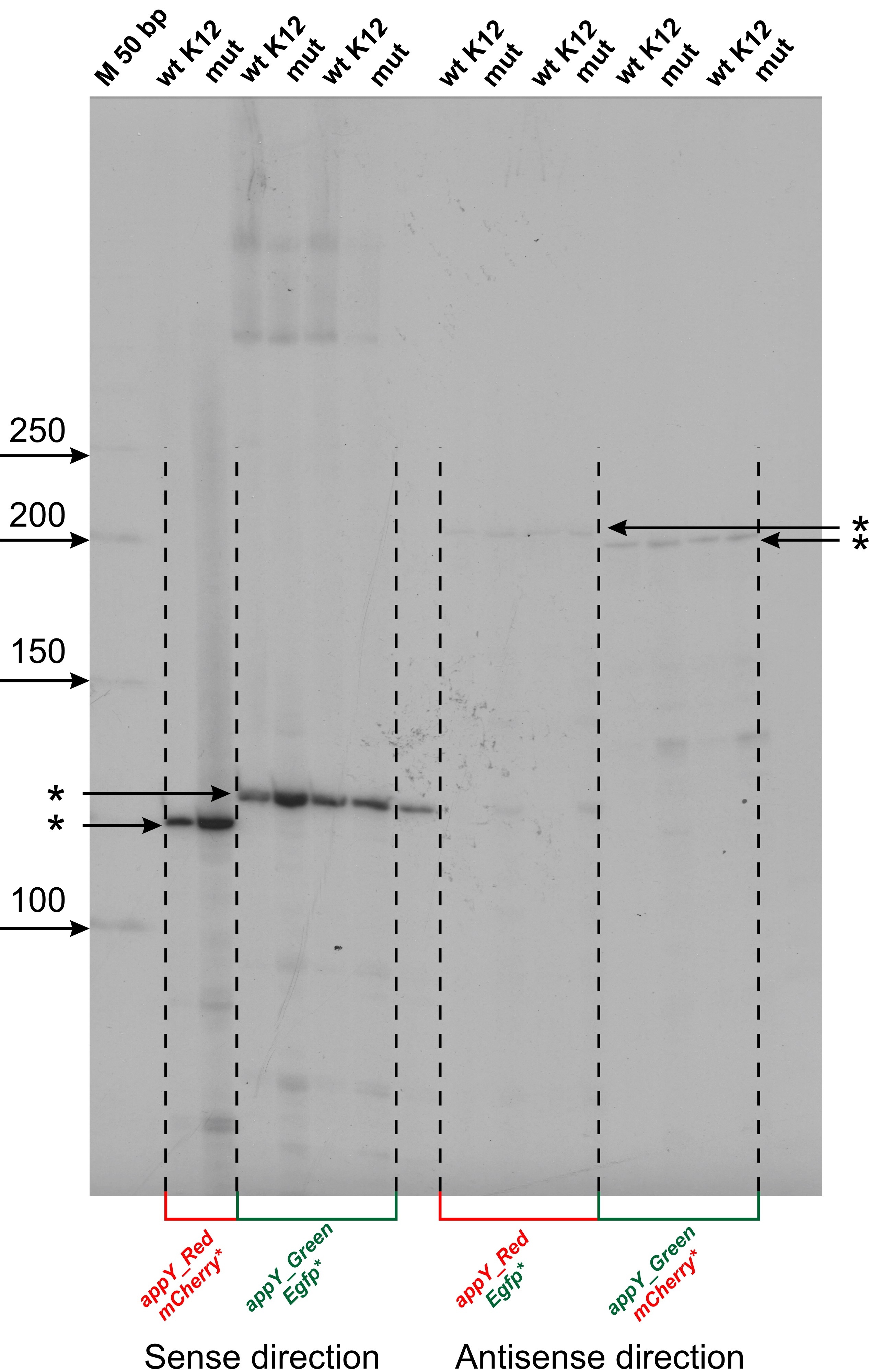| RED | Toward mCherry gene | Toward Egfp gene |