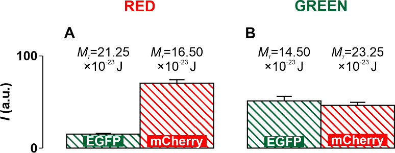 Egfp proteins is 33.54, and that of mCherry proteins is 15.84.