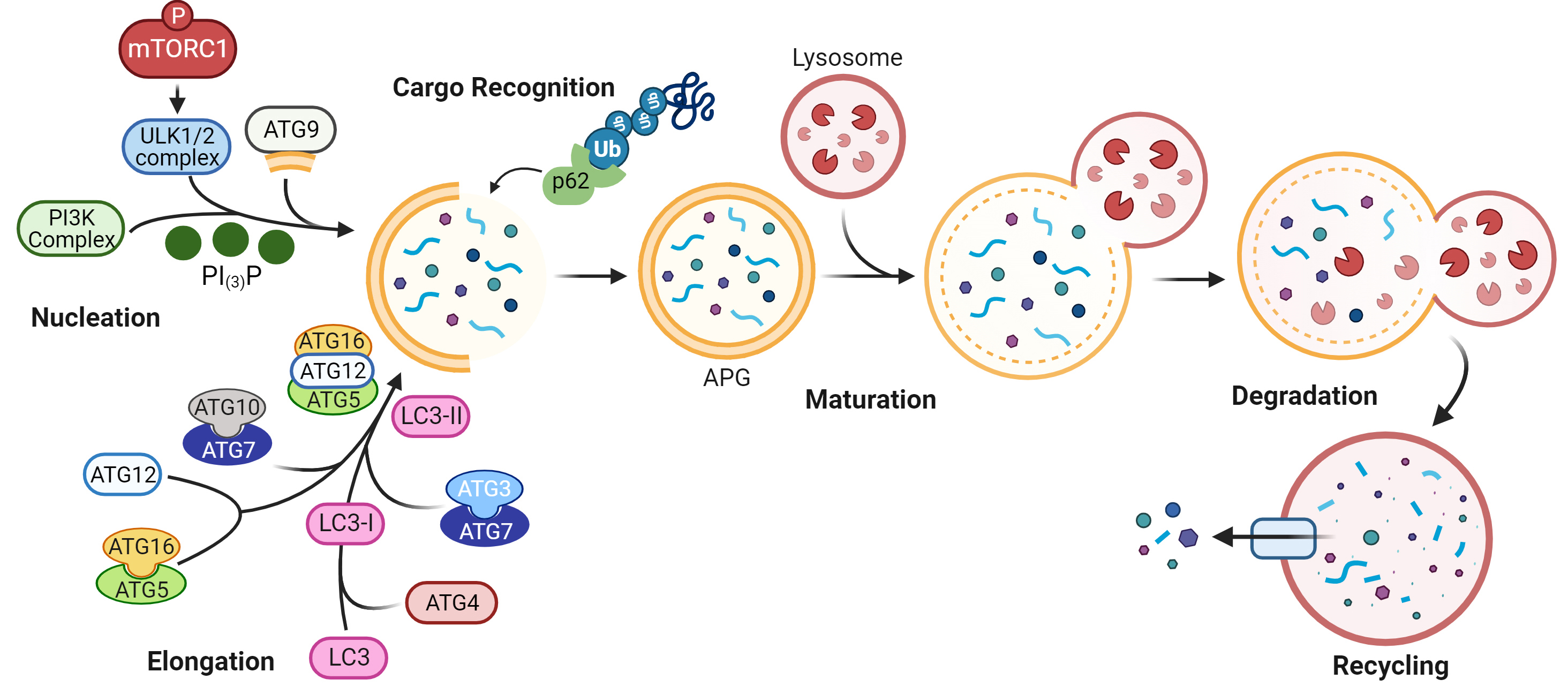in this dynamic process. Autophagy is initiated upon phosphorylation of mTORC1,
