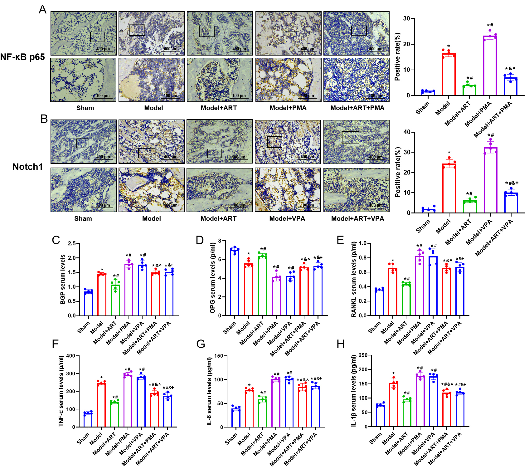 expression of NF-B p65, Notch1, inflammatory cytokines, and bone