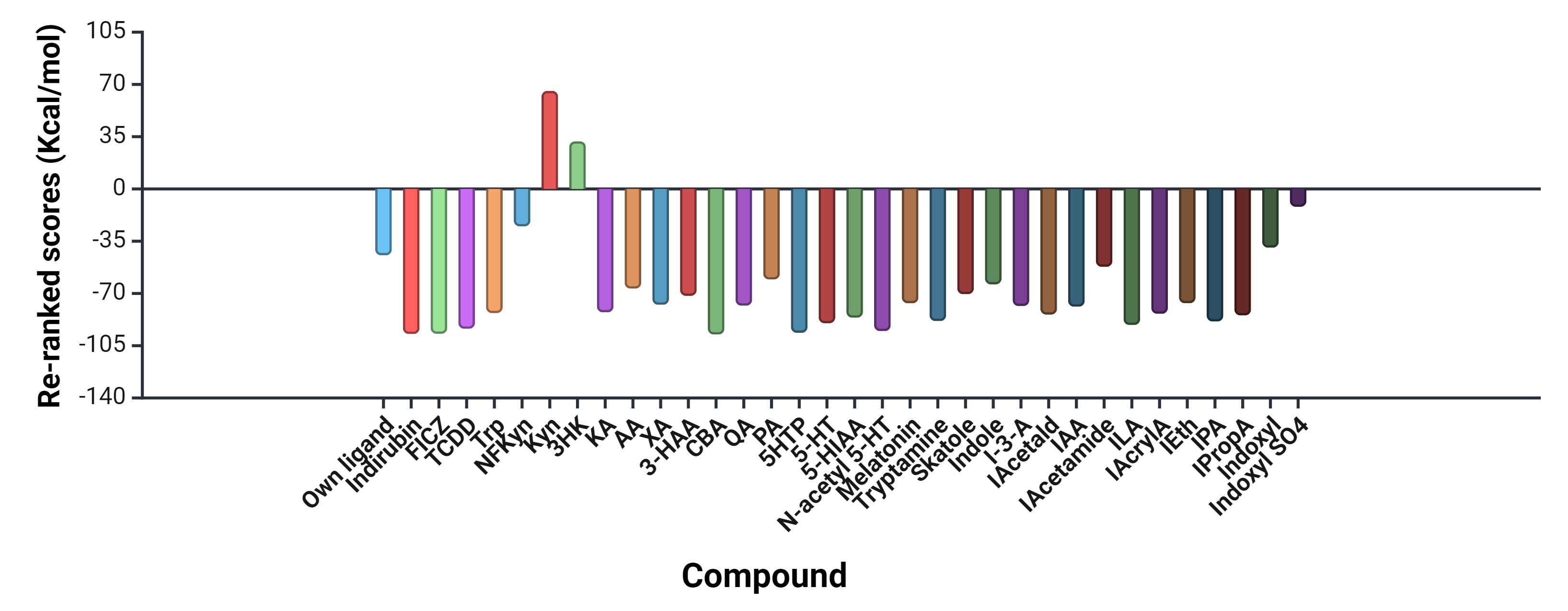 Molecular docking of Kyn, KA, Trp and a range of Trp metabolites to the crystal structure of the human AhR was performed under appropriate docking conditions.
