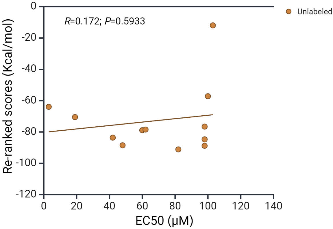 In order to correlate the AhR docking scores of Trp metabolites with published binding parameters obtained by other methods, we identified the median effective concentration (EC50) values of 12 metabolites from the review by Kumar et al. [31]. As shown in Fig. 4 (Ref. [31]), there appears to be no significant correlation between the docking score and the EC50 (Pearson Product Moment correlation gave a coefficient r of 0.172 and a p value of 0.5933).
