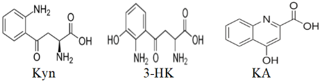 Structures of kynurenine (Kyn), 3-hydroxykynurenine (3-HK) and kynurenic acid (KA).