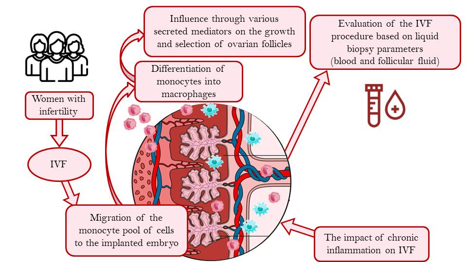 A critical component of the inflammatory reaction in patients undergoing in vitro fertilization (IVF) involves more than just the activation of pro-inflammatory cells in response to ovarian stimulation. Our research shows that changes in the distribution of monocytes and macrophages can influence embryo implantation success and pregnancy outcomes in women. These processes are influenced by various infertility-related factors, including those mentioned above. However, these findings are preliminary and require further investigation.