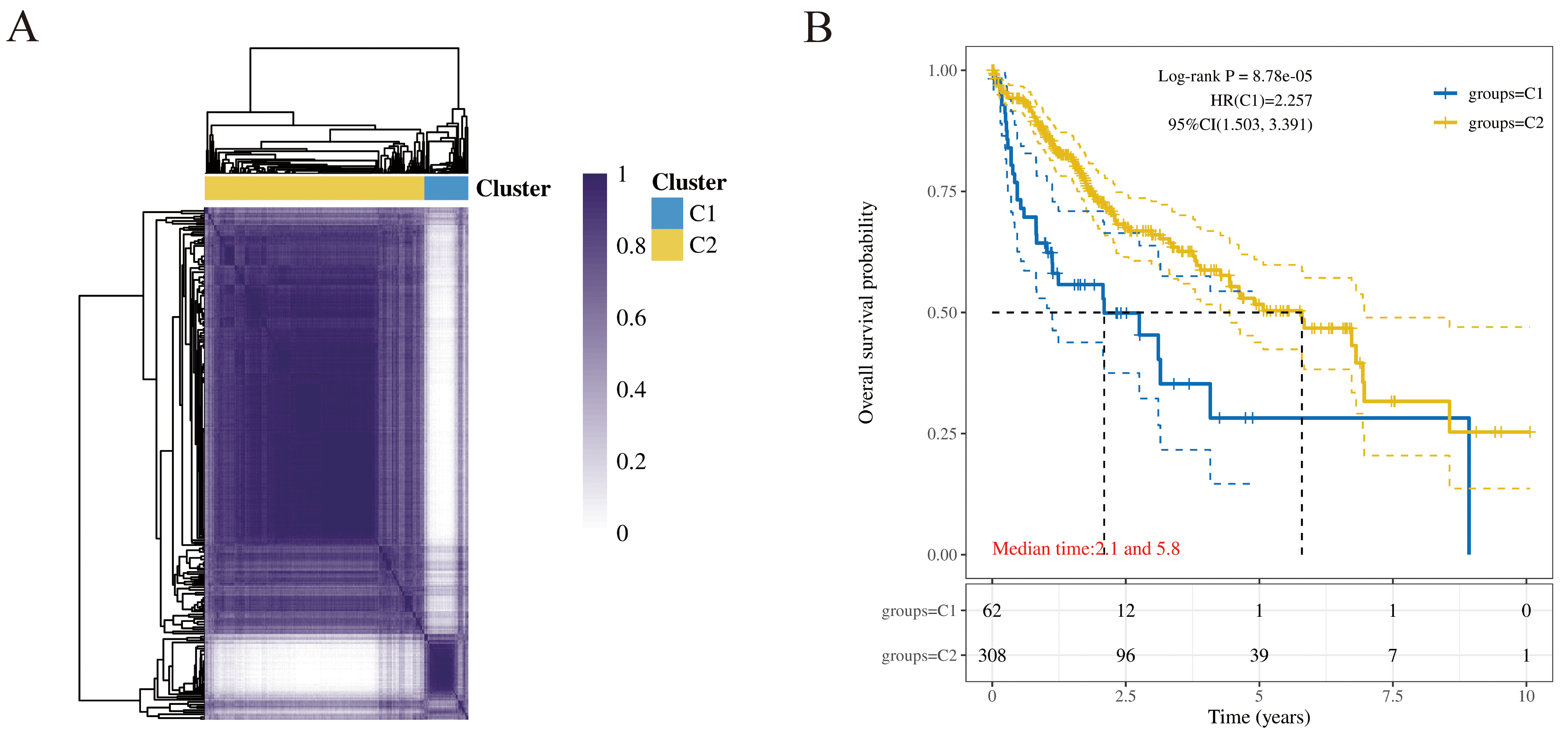 in the C1 subtype had significantly shorter overall survival than those in the C2