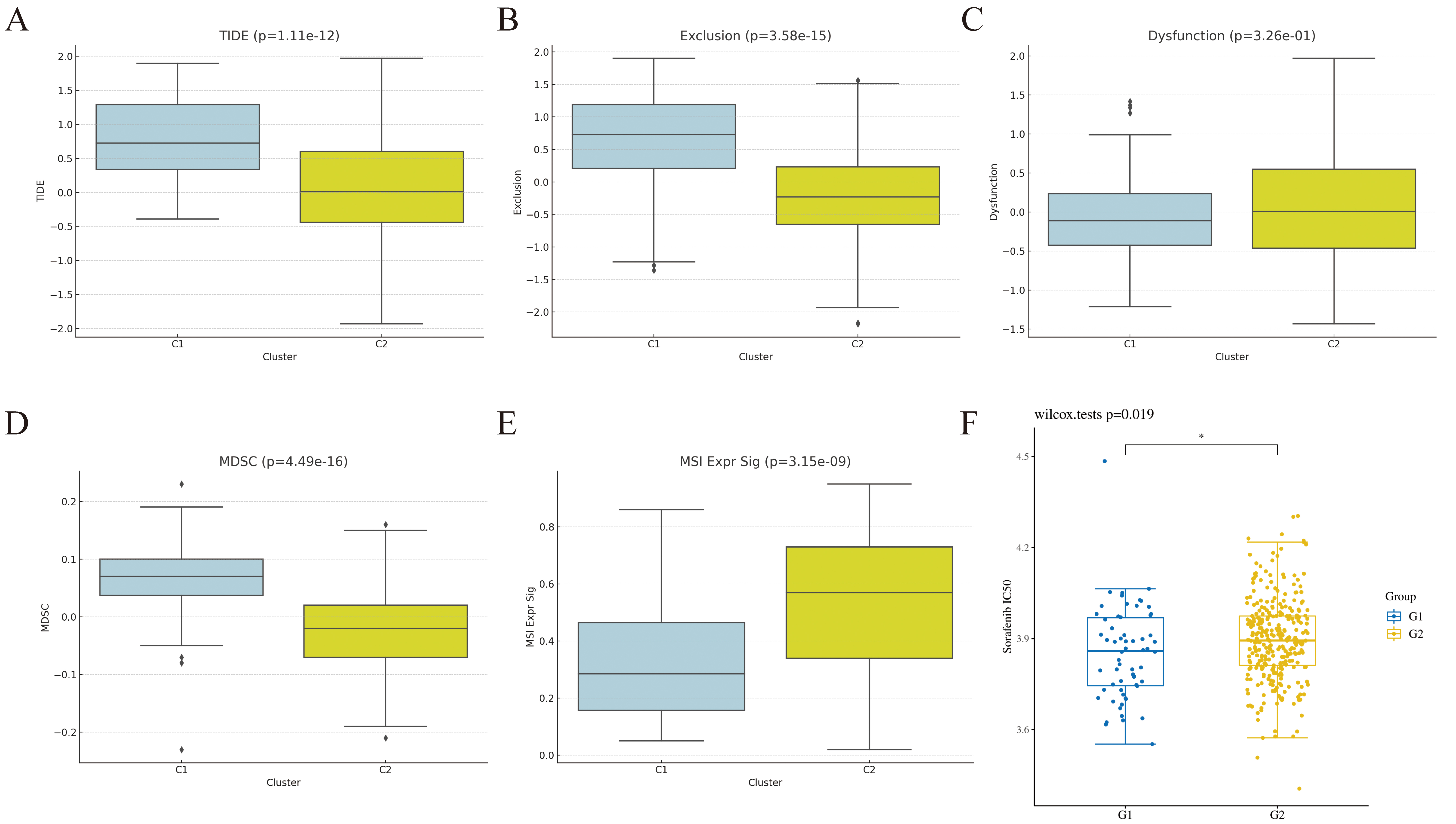 Immune Dysfunction and Exclusion. (B) Exclusion. (C) Dysfunction. (D) MDSC,