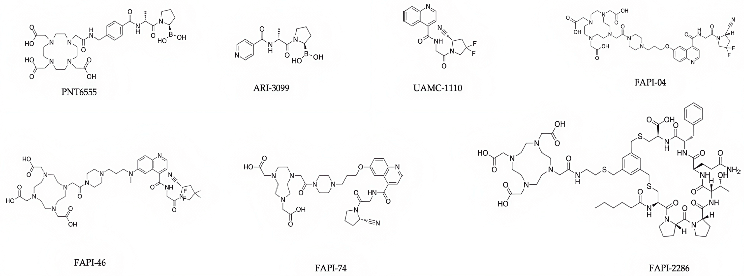 2286, DOTAGA-FAP-2286-ALB, and derivatives of FAPI-04, TE-FAPI-06 and -07,