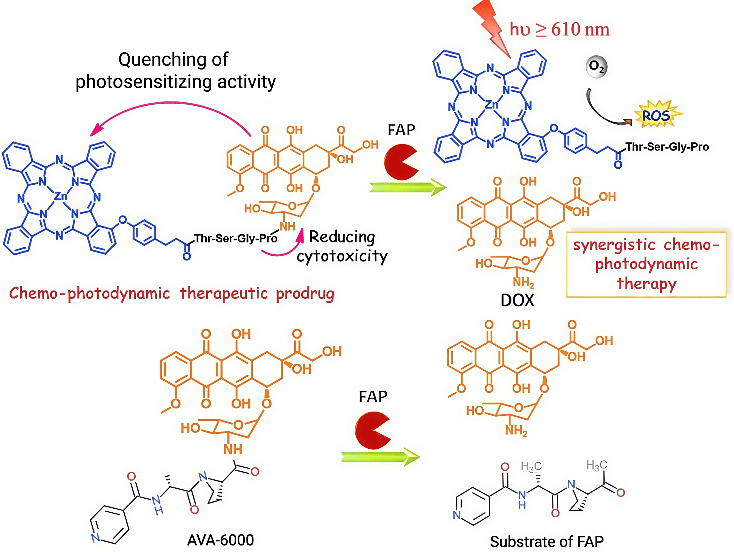 activation of a FAP-cleavable chemo-photodynamic prodrug [359], a prodrug
