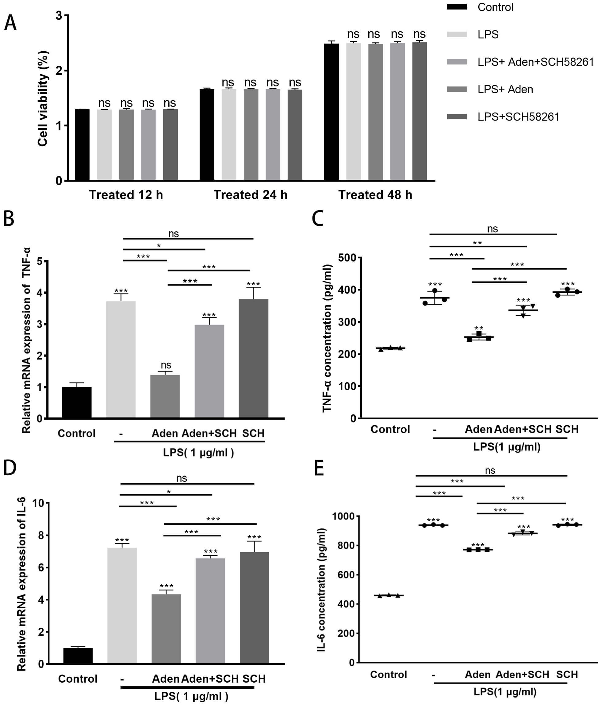 LPS-treated PVM/Ms by activating A2AR. (B–E) Changes in mRNA and protein