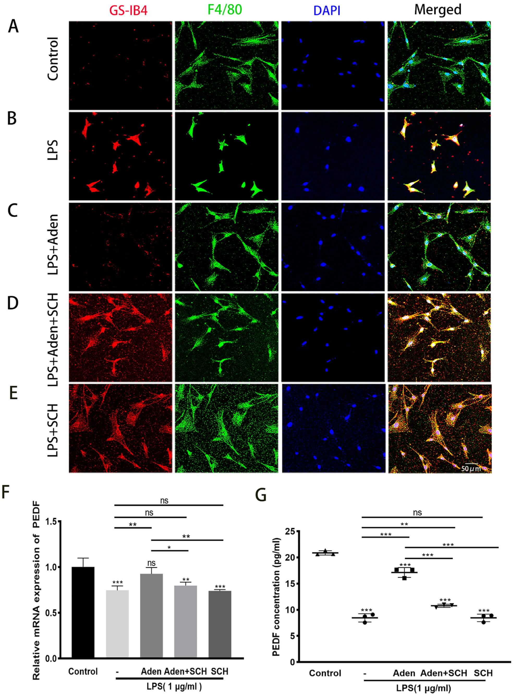 PEDF secretion by activating A2AR. (A–E) Adenosine inhibited the inflammatory