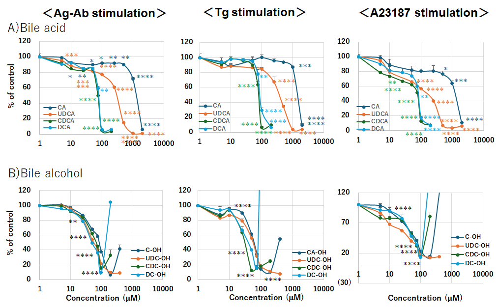 These results support the hypothesis that bile acid and alcohol steroid nuclei inhibit the degranulation of activated RBL-2H3 cells.