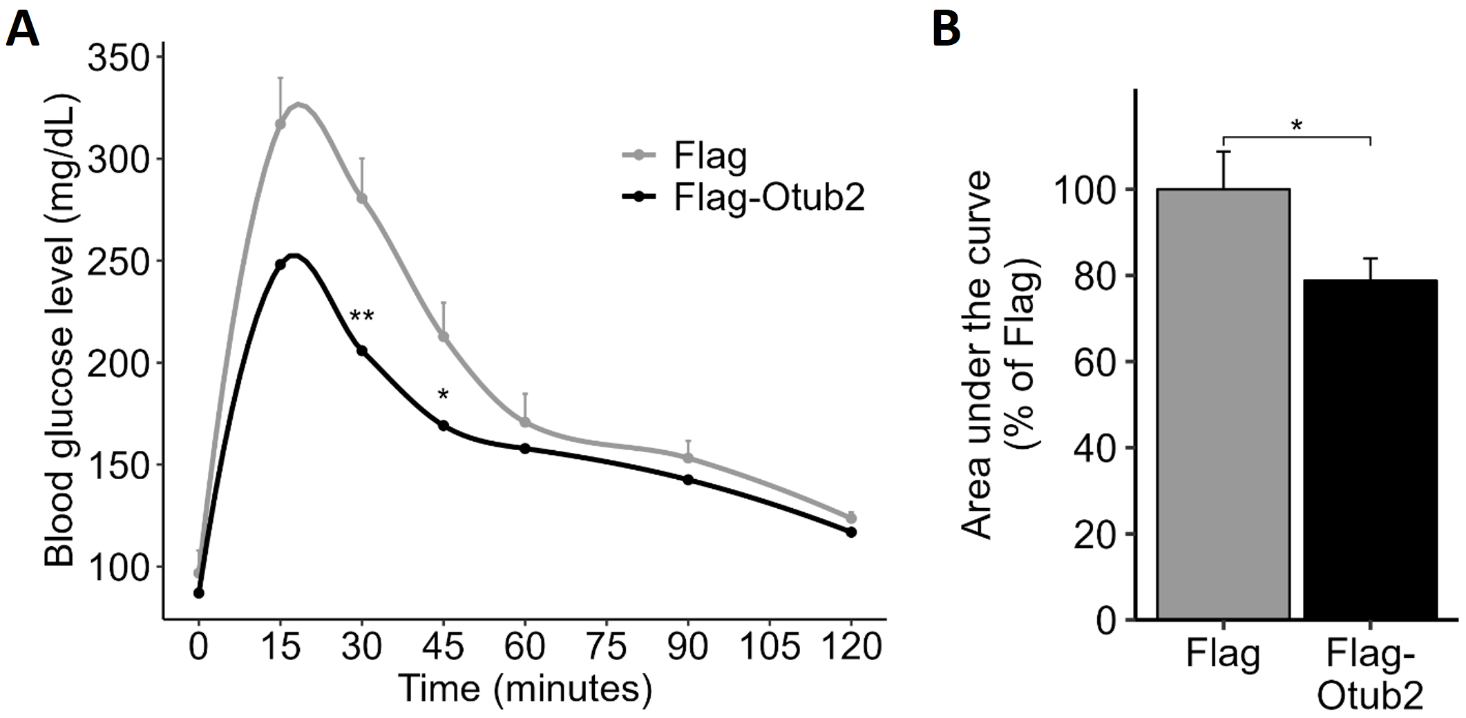 however, blood glucose levels of Flag-Otub2 mice were significantly lower