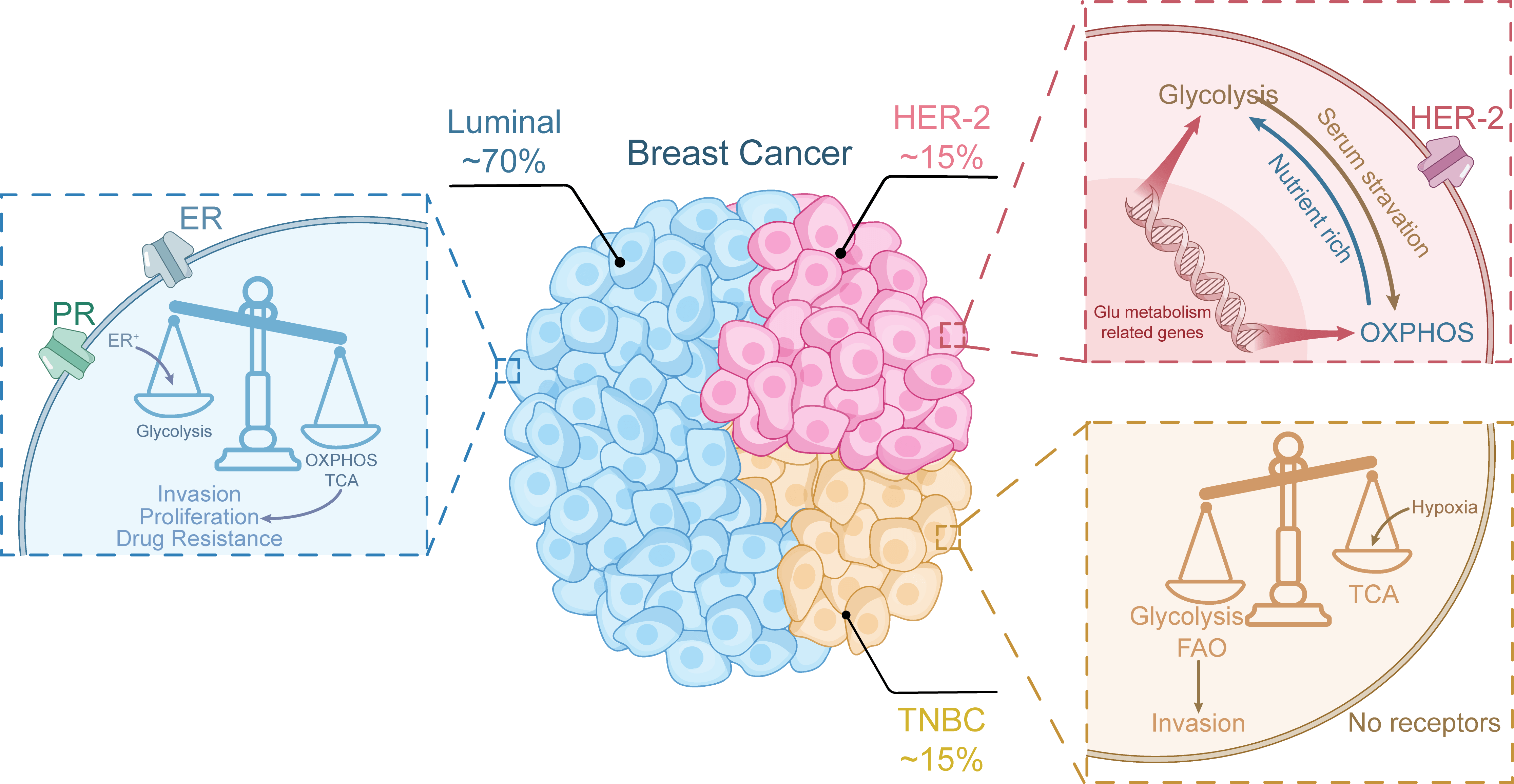 their divergent metabolic demands. In estrogen ER+ breast cancer, FAO is