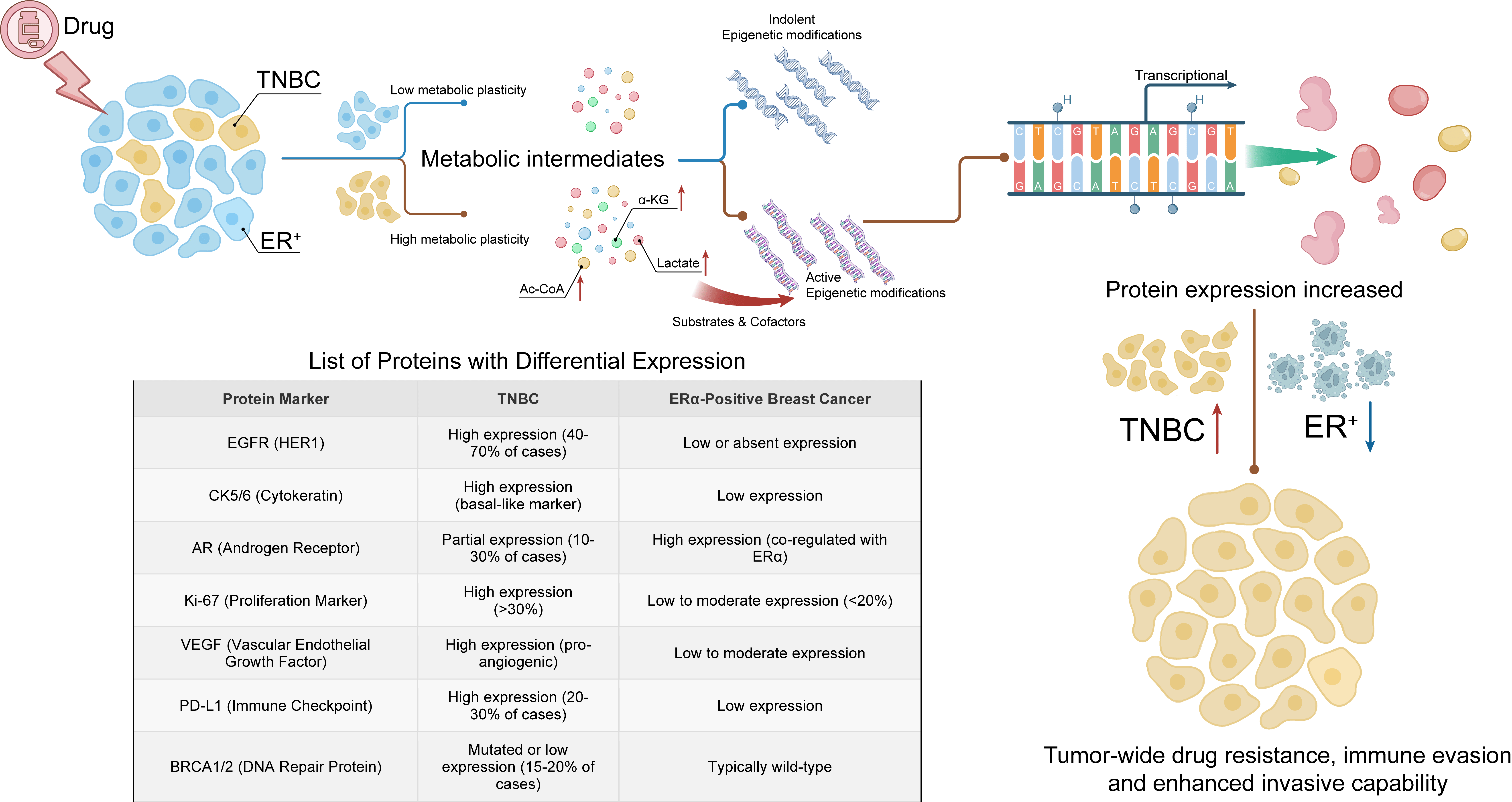 upward arrow: Enhanced drug resistance, immune evasion, and invasion in TNBC;