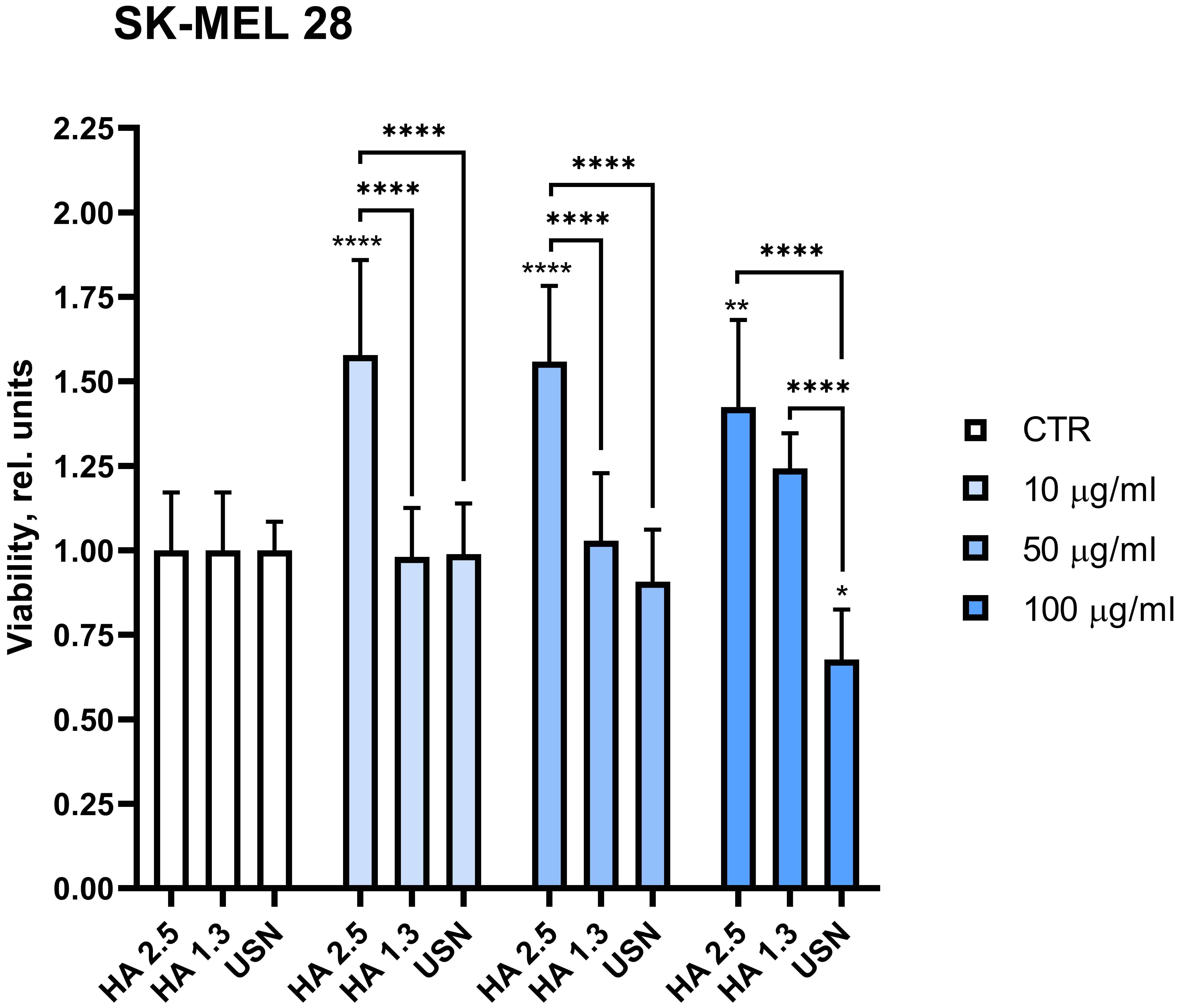 Relative viability of SK-MEL 28 cells after incubation with HA