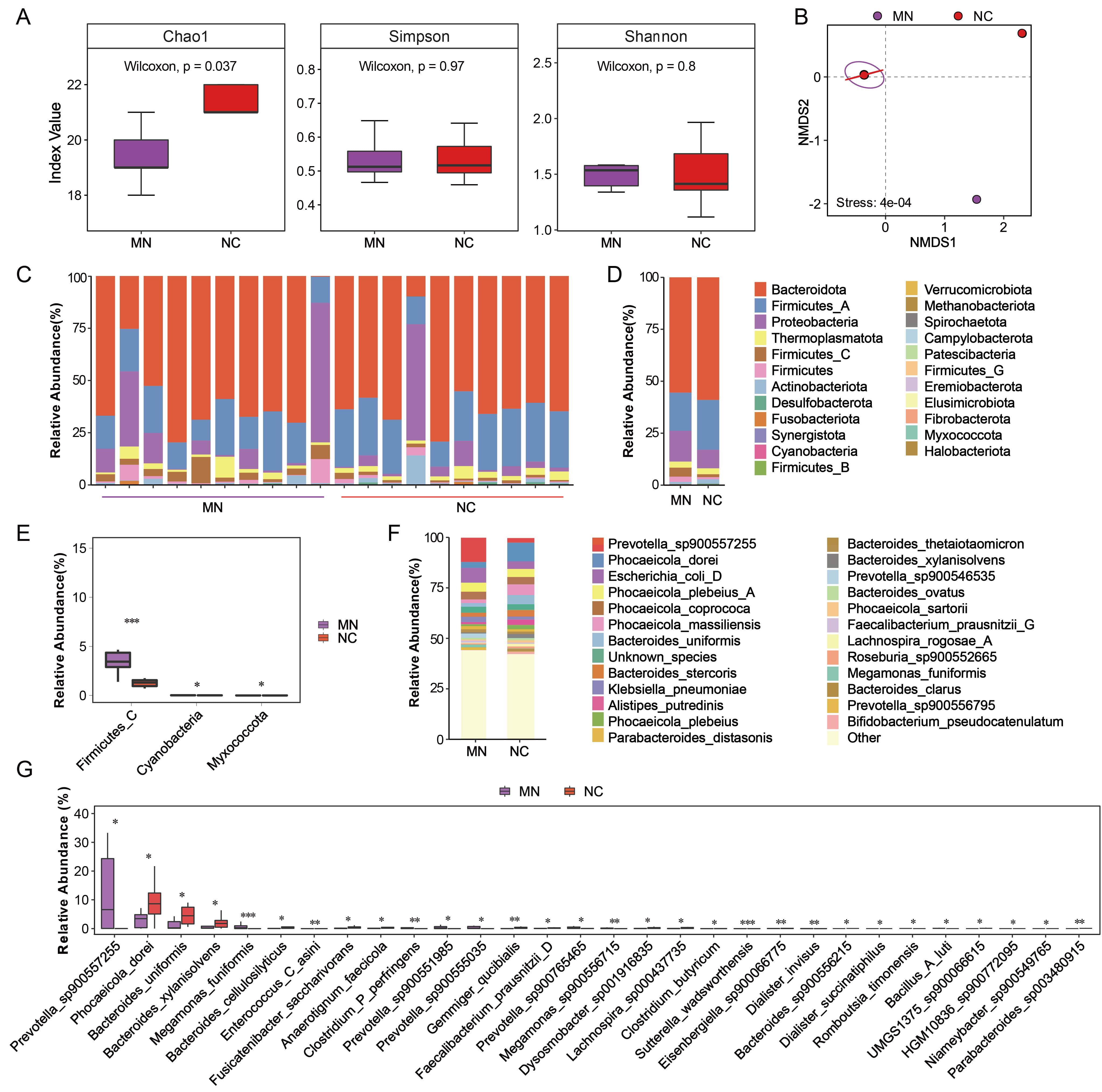 bacterial species in the MN and NC groups. (G) Differentially abundant species