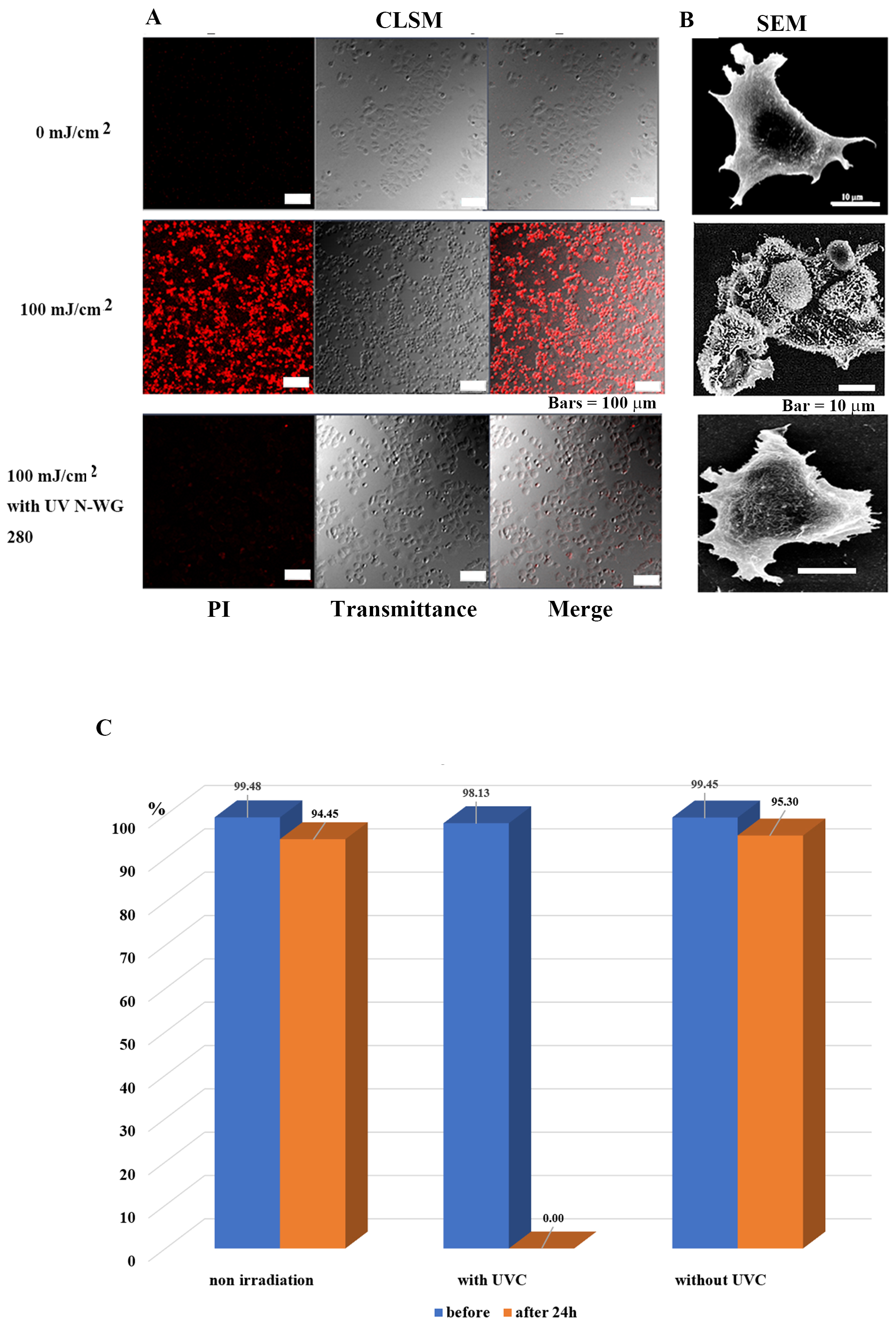 observed by confocal laser scanning microscopy after 24 h of irradiation. The