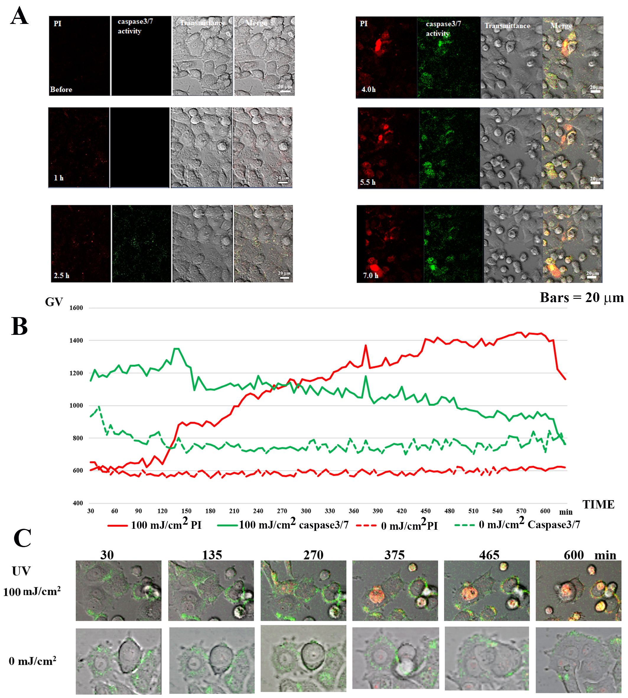 3/7 and PI staining in 100 mJ/cm