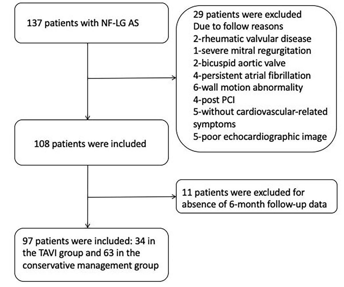 This retrospective study was conducted at The First Affiliated Hospital, Zhejiang University School of Medicine, between October 2019 and June 2023. Inclusion criteria were as follows: (1) a diagnosis of NF-LG AS confirmed by multidetector computed tomography (MDCT), transthoracic echocardiography (TTE), and dobutamine stress echocardiography; (2) AVA