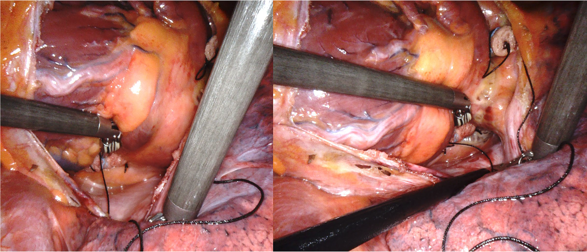 European guidelines for the management of AF define percutaneous pulmonary vein (PV) ablation as a first-line treatment within a shared decision-making rhythm control strategy in patients with paroxysmal AF, to reduce symptom, recurrence, and progression of AF [3]. However, sub-optimal outcomes of catheter ablation (CA) in patients with persistent or long-standing persistent AF have driven the pursuit of alternative methodologies. Surgical ablation represented by the Cox-Maze Technique has proven to be a safe and effective technique in sinus rhythm restoration [4]. However, the invasiveness of the procedure and higher risk of post operative complications compared with the transcatheter approach limits its use, especially to concomitant cardiac surgery. In fact, the first Cox Maze procedure required full sternotomy and cardiopulmonary bypass to perform a complete set of lesions, including both the left and right atrium and epi/endocardial ablation lines [5]. To emulate the success of the Cox-Maze procedure while minimizing invasiveness, closed-chest thoracoscopic epicardial PVI has been developed. The advent of robotic technology has further enhanced these procedures, offering improved precision by magnified visualization and dexterity optimization. These features allow precise positioning and control of the ablation probe and a better control of surrounding cardiac structures, reducing the risk of damage (Fig. 3). These characteristics also facilitated access and extended ablation beyond the PVs to the posterior wall, roof and floor of the LA and left auricle. A preliminary study of our center [2] described encouraging results of this technique in term of safety and feasibility.