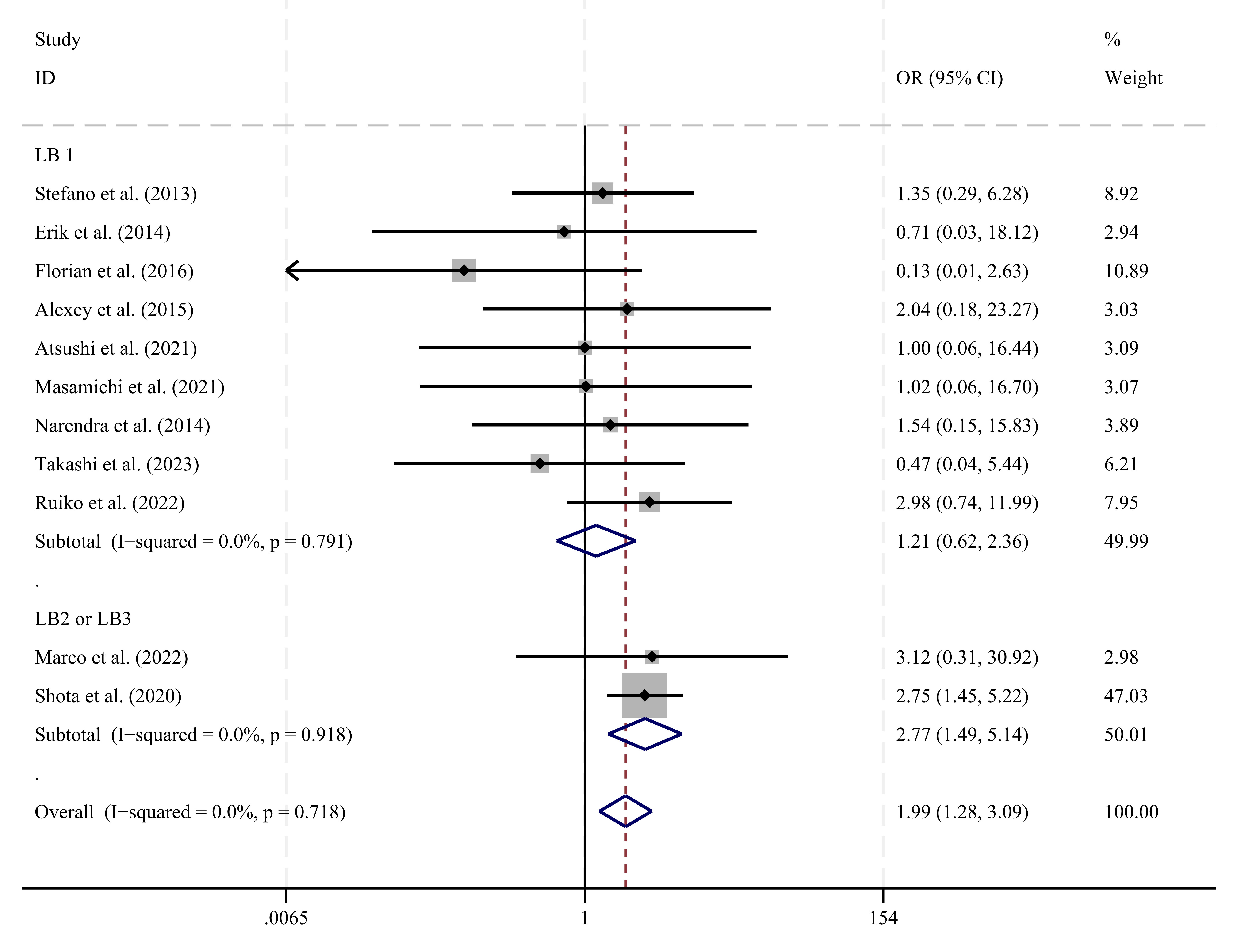 | LB2 or LB3 | 2 | 179 | 1.26 | 0.20–8.02 | 0.804 | 14.9 |