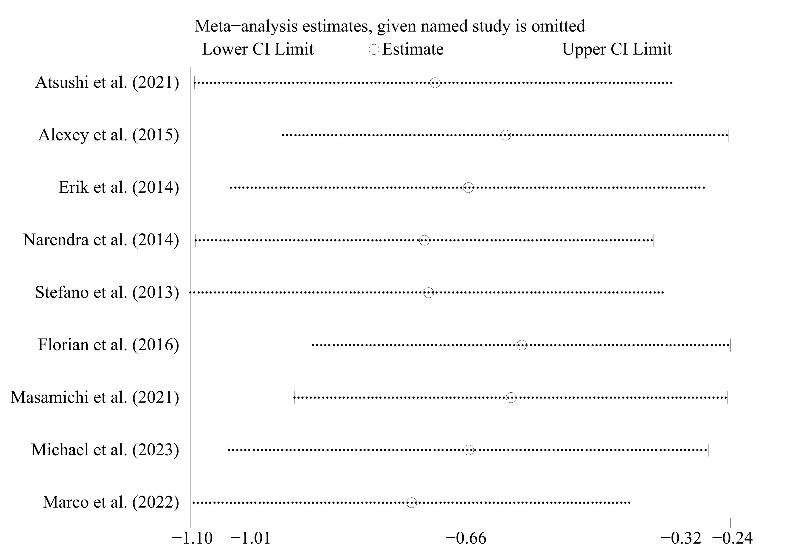 We performed a sensitivity analysis specifically for outcomes with high heterogeneity. Even after removing each study one at a time, the results remained consistent, indicating a high level of stability in our findings. Fig. 6 illustrates one of these outcomes: surgery duration.