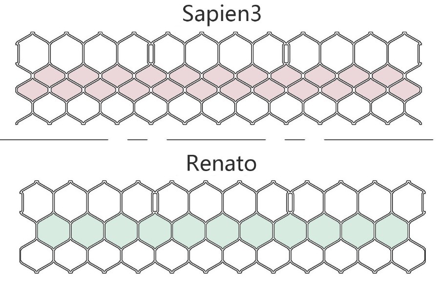 Fig. 2. Differences in the stent structural design of the Sapine3 valve and Renato valve. The Renato valve stent exhibits improved expandability and can reduce the insufficient device expansion in the reimplanted transcatheter heart valve (THV).